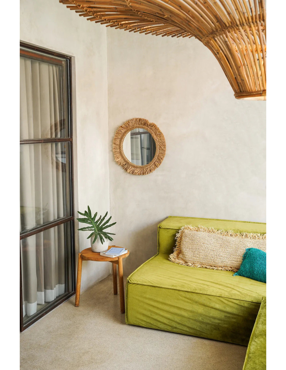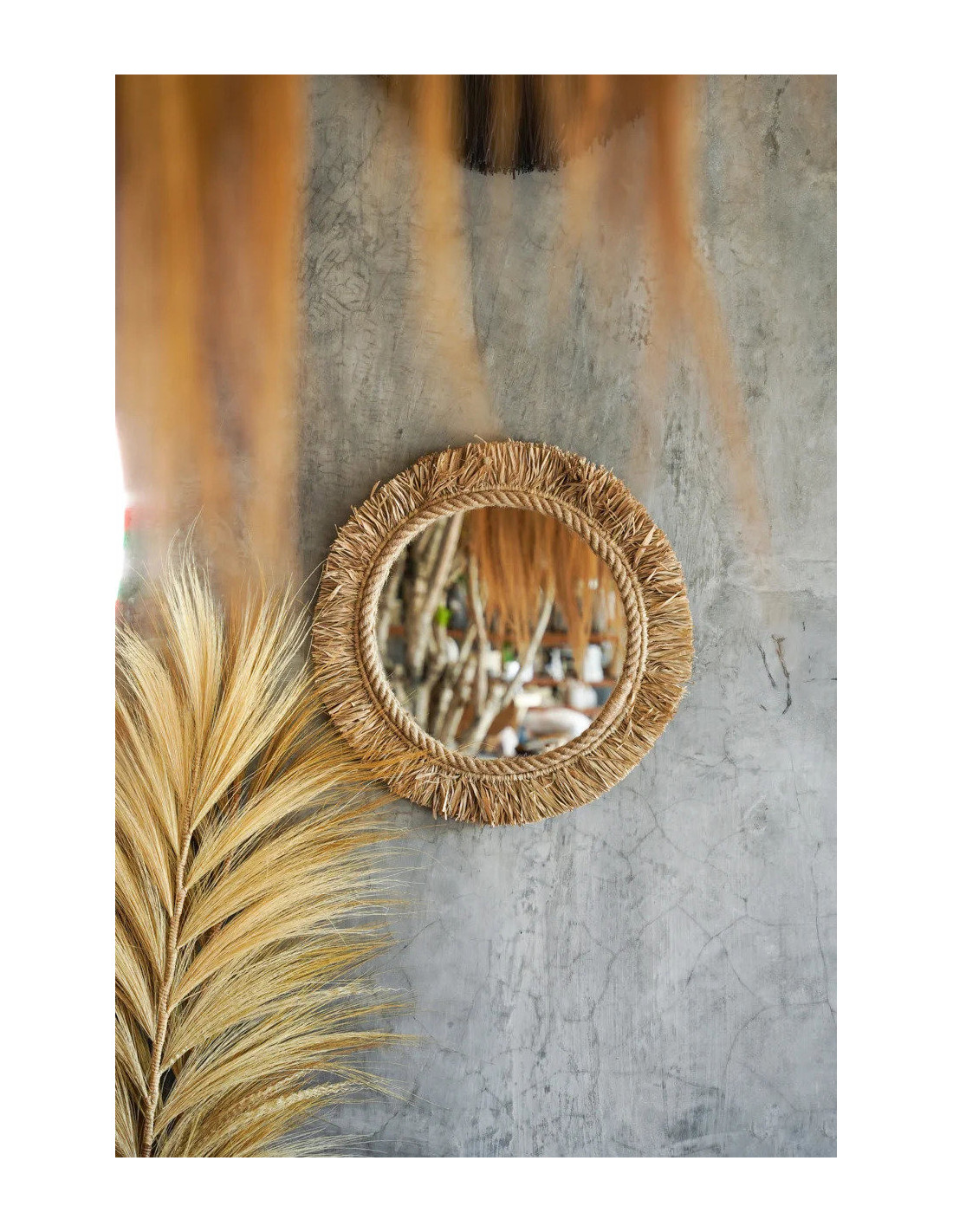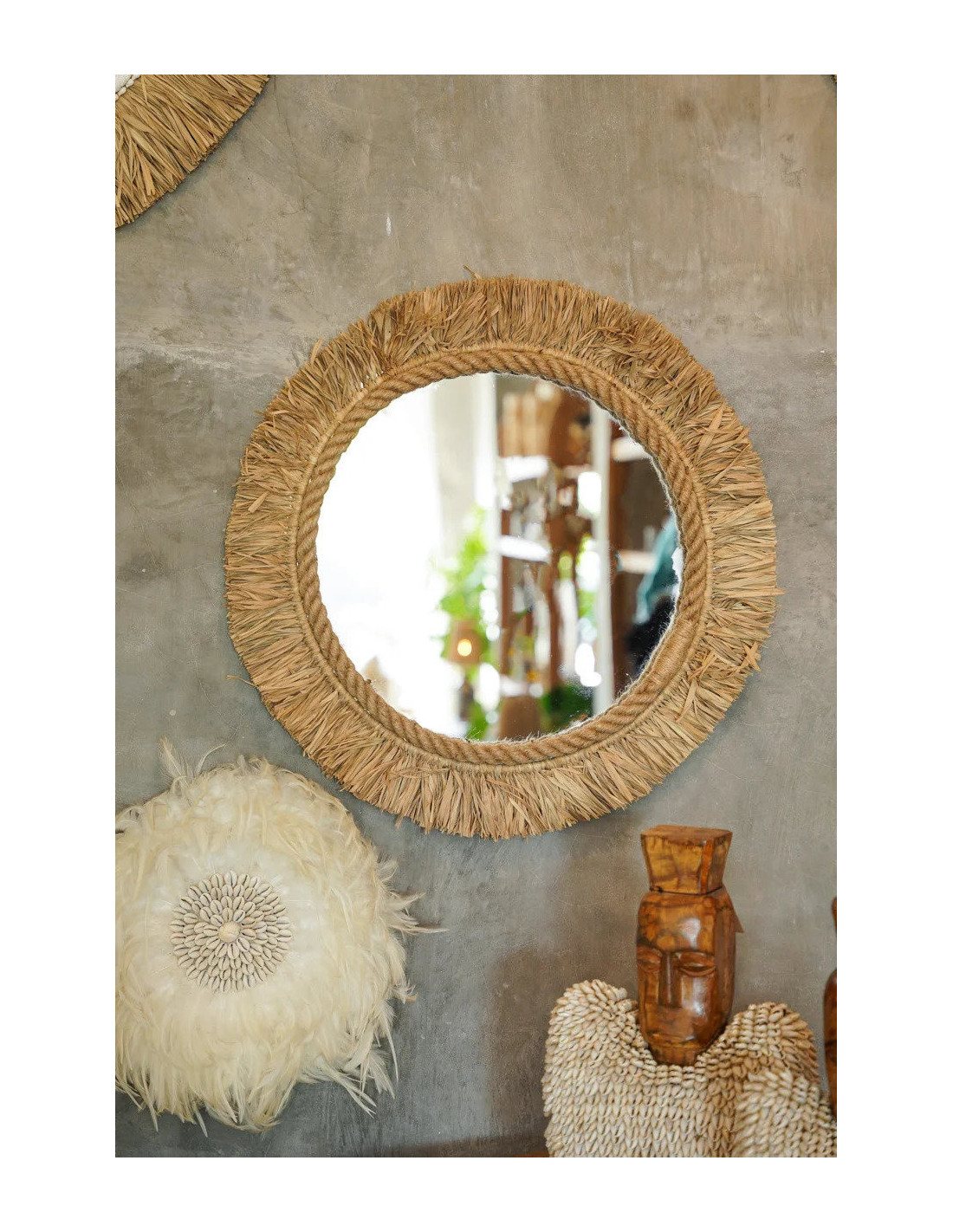 Miroir Mural Rond 60 cm en Raphia Naturel The Tahiti