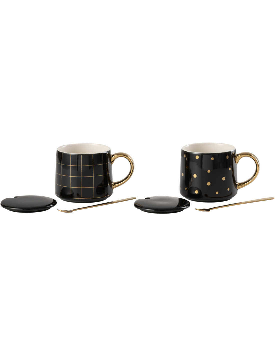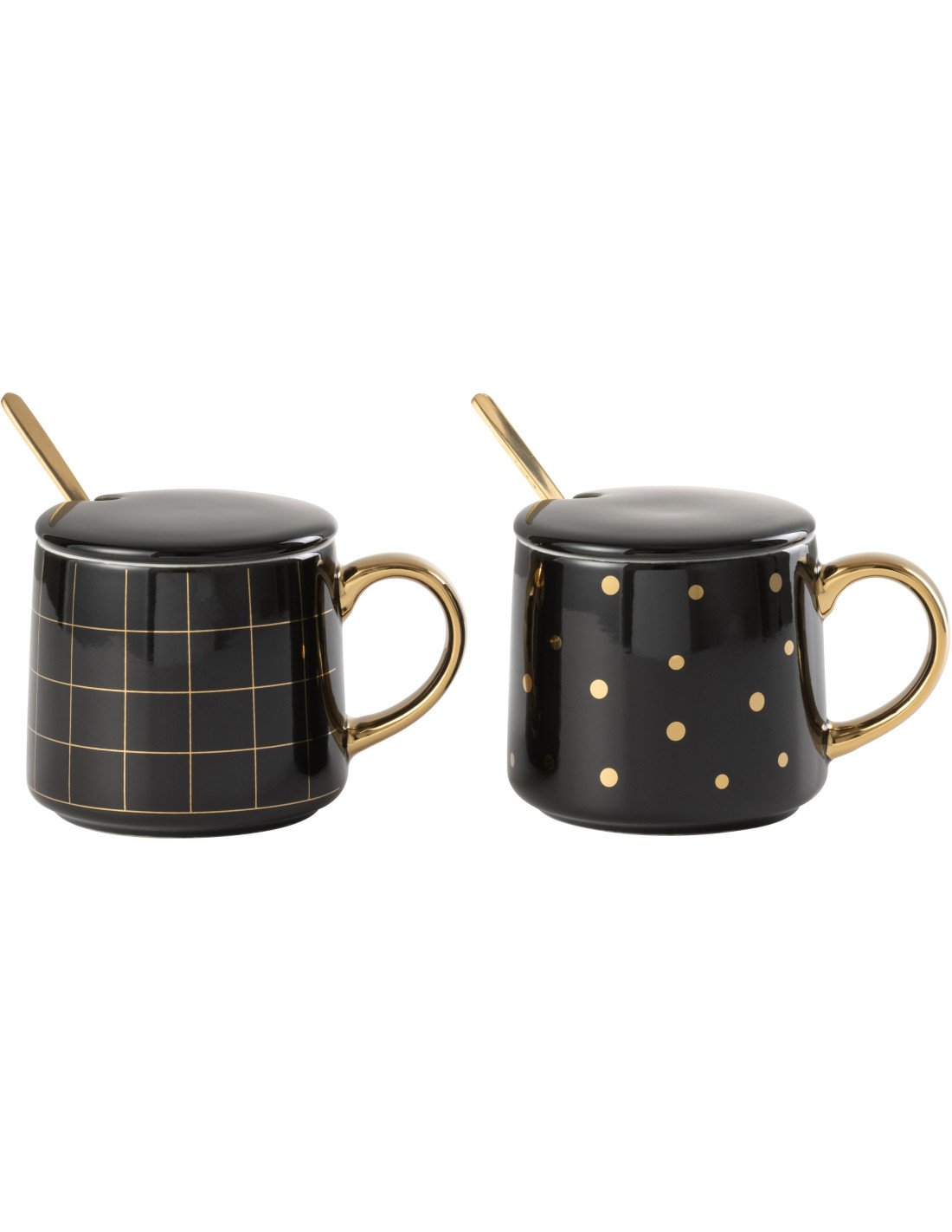 Mug avec couvercle Amélie en Porcelaine Noir Doré (Lot de 2) - 1