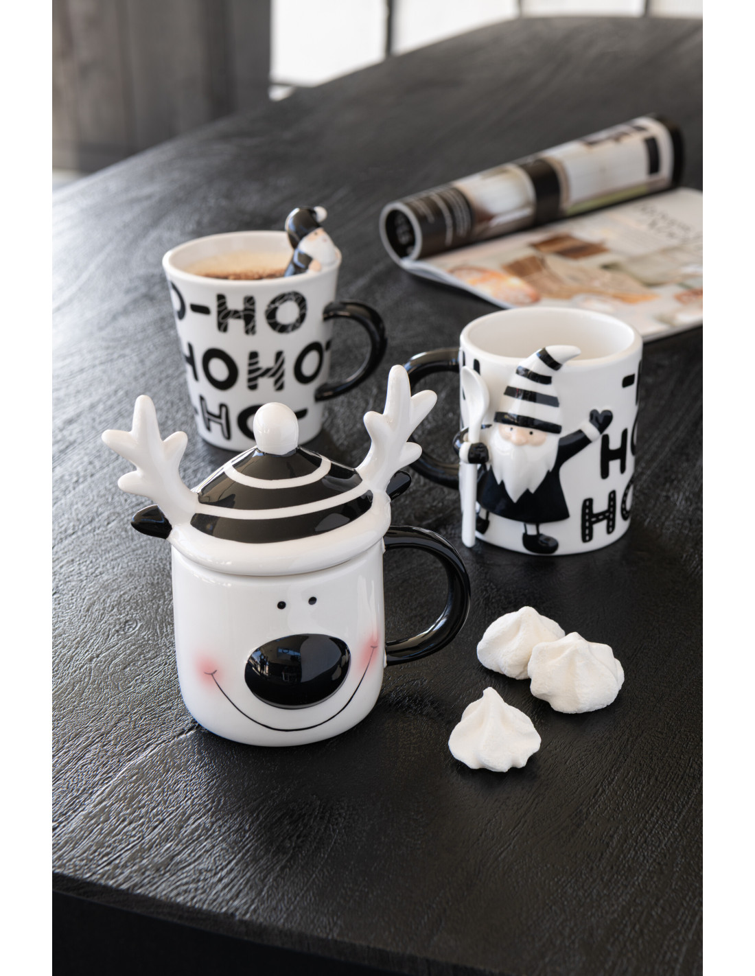 Mug de Noël avec couvercle Renne en Dolomite Blanc Noir Noelya