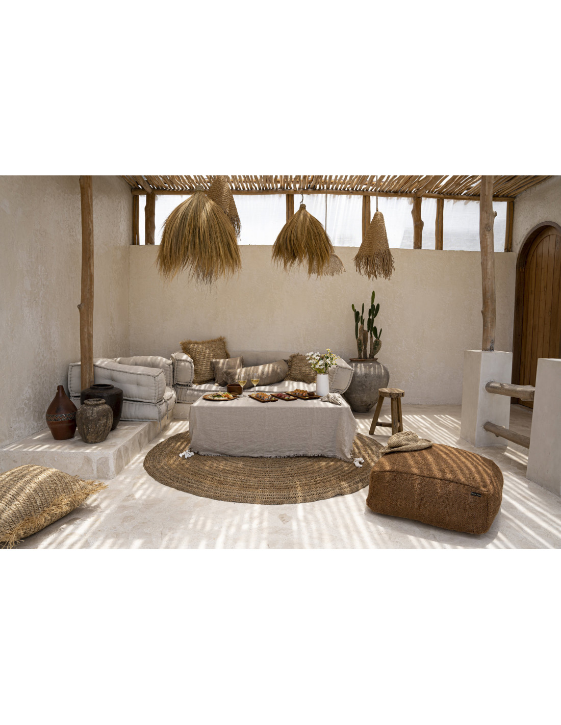 Nappe originale Bohème chic Rectangulaire 150x250 en Lin Beige Avec franges The Linen
