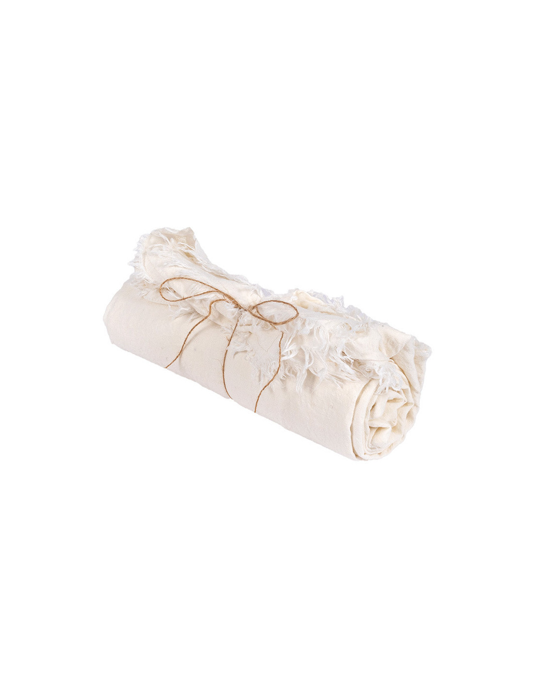 Nappe originale Bohème chic Carrée 150x150 en Lin Blanc Avec franges The Linen