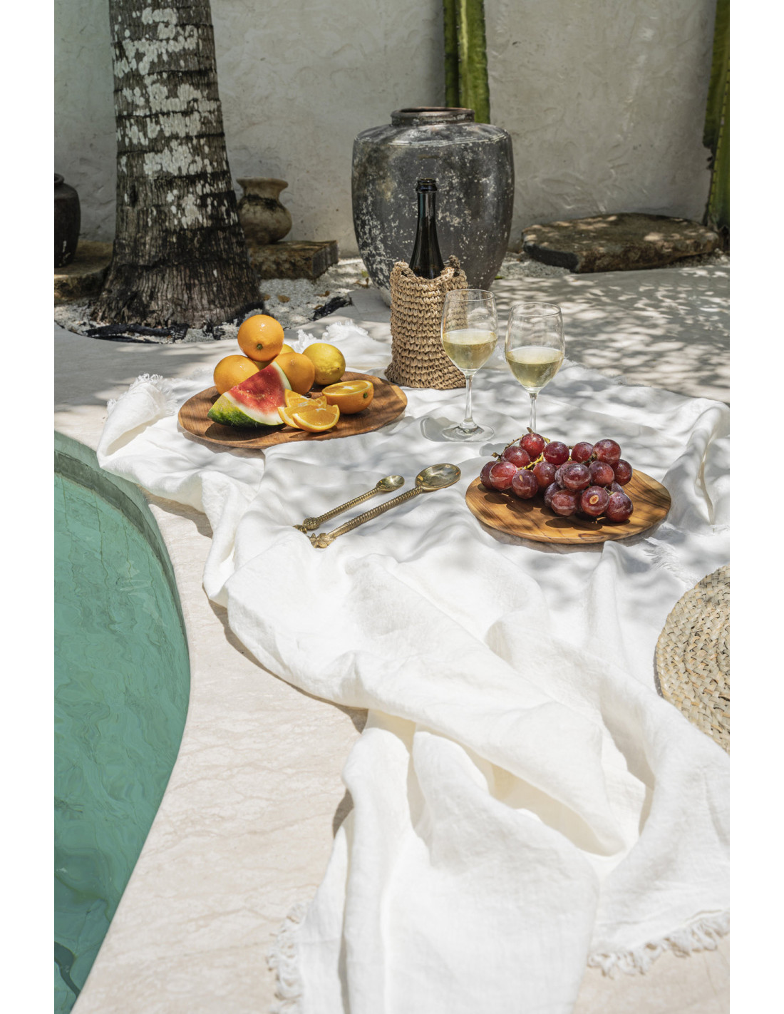 Nappe originale Bohème chic Rectangulaire 150x200 en Lin Blanc Avec franges The Linen