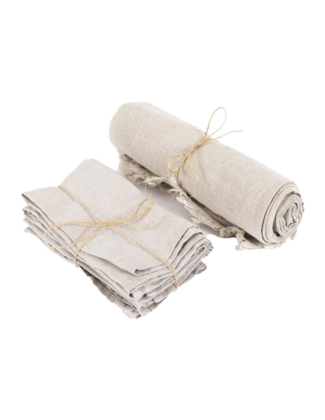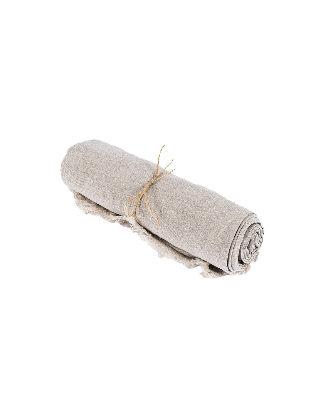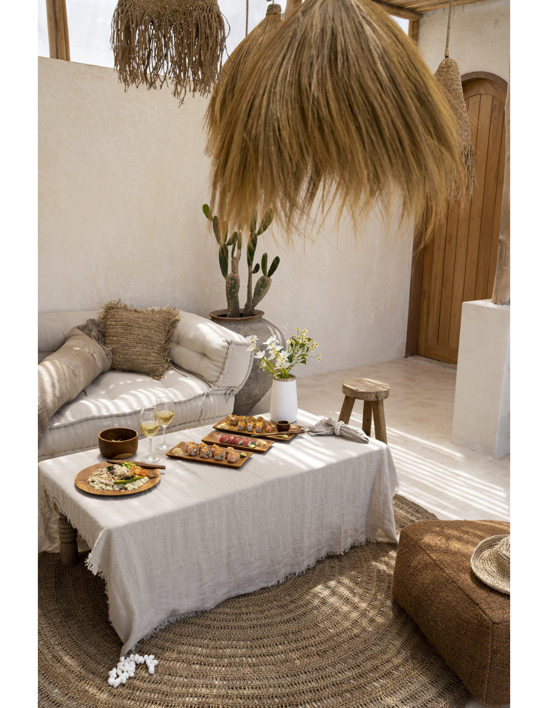 Nappe originale Bohème chic Carrée 150x150 en Lin Beige Avec franges The Linen