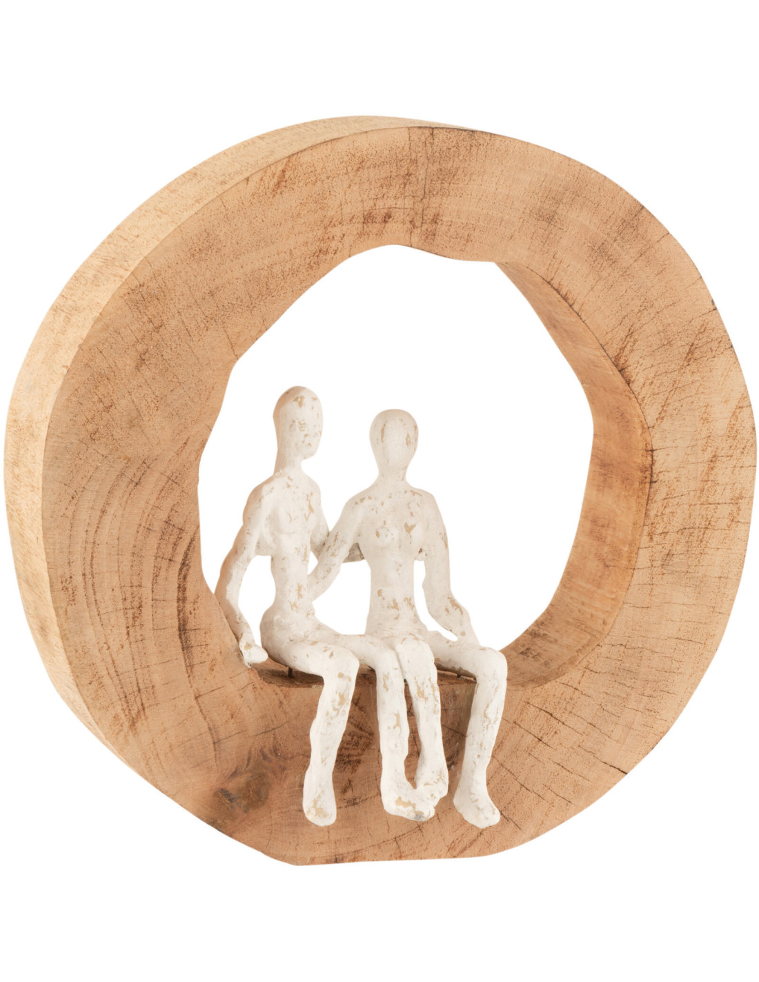 Objet déco à poser abstrait Couple assis 29 cm en Bois de manguier Naturel Métal Blanc Ulven