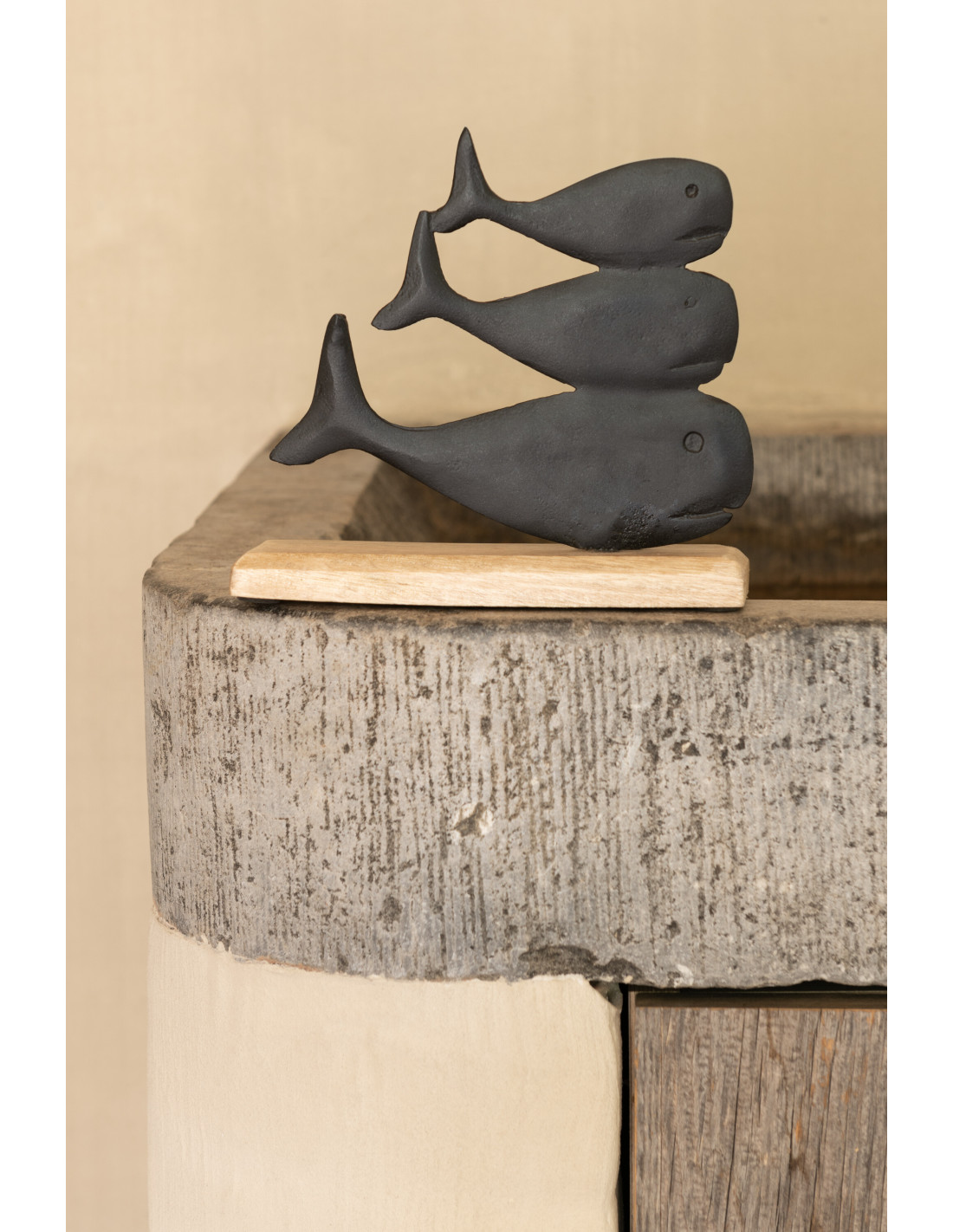 Objet déco à poser Baleines superposée Hauteur 20 cm en Métal Noir Bois Naturel Ursa - 3