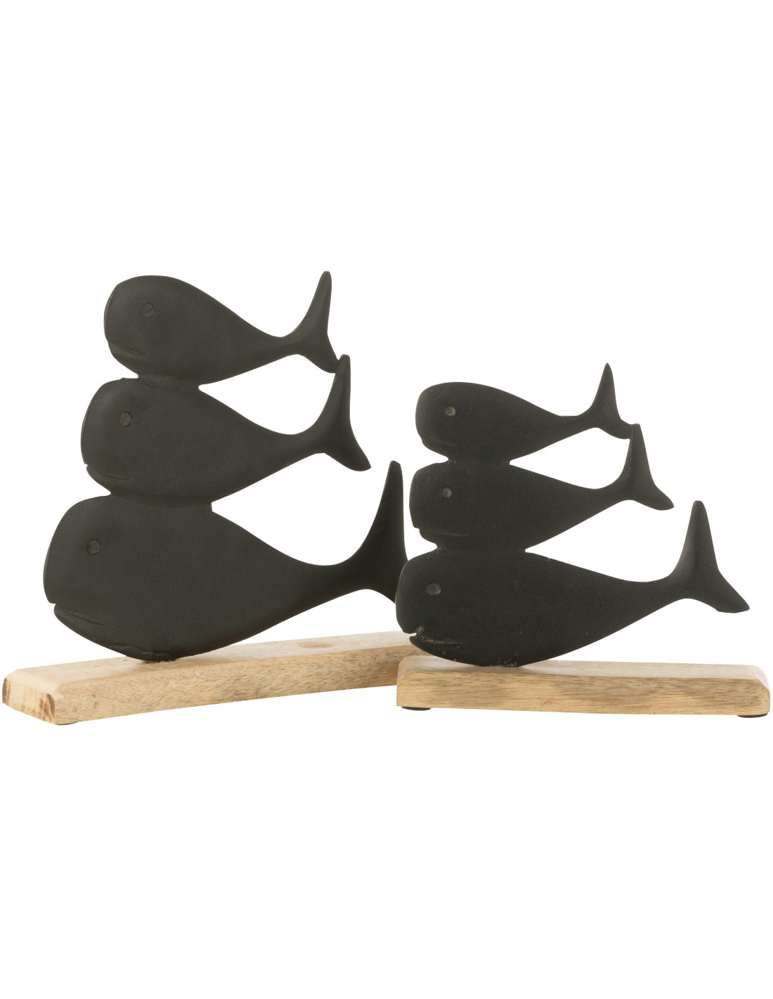 Objet déco à poser Baleines superposée Hauteur 20 cm en Métal Noir Bois Naturel Ursa - 1