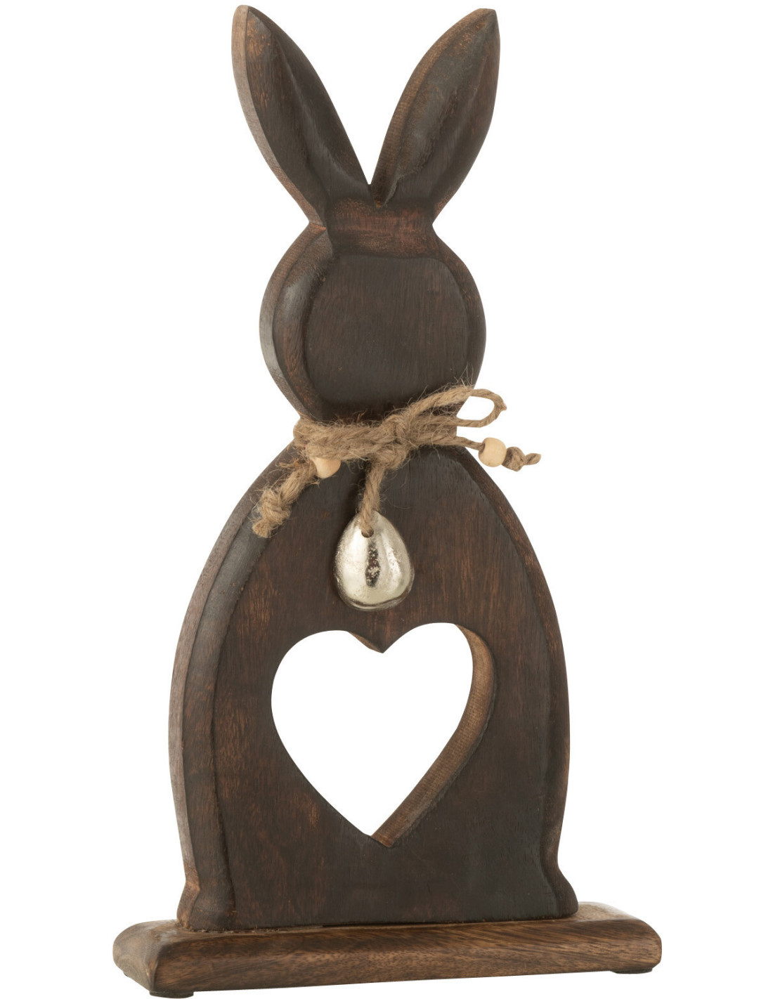 Objet déco à poser Lapin Coeur Hauteur 30 cm en Bois de manguier Marron foncé Daxton