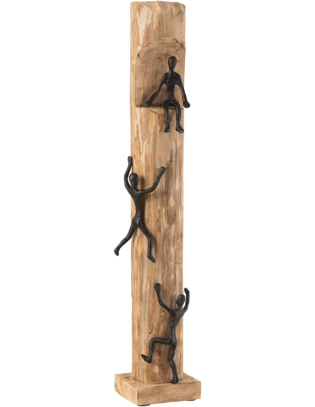 Objet déco à poser original XL Hommes grimpants Hauteur 75 cm en Bois de manguier Naturel Métal Noir Garel