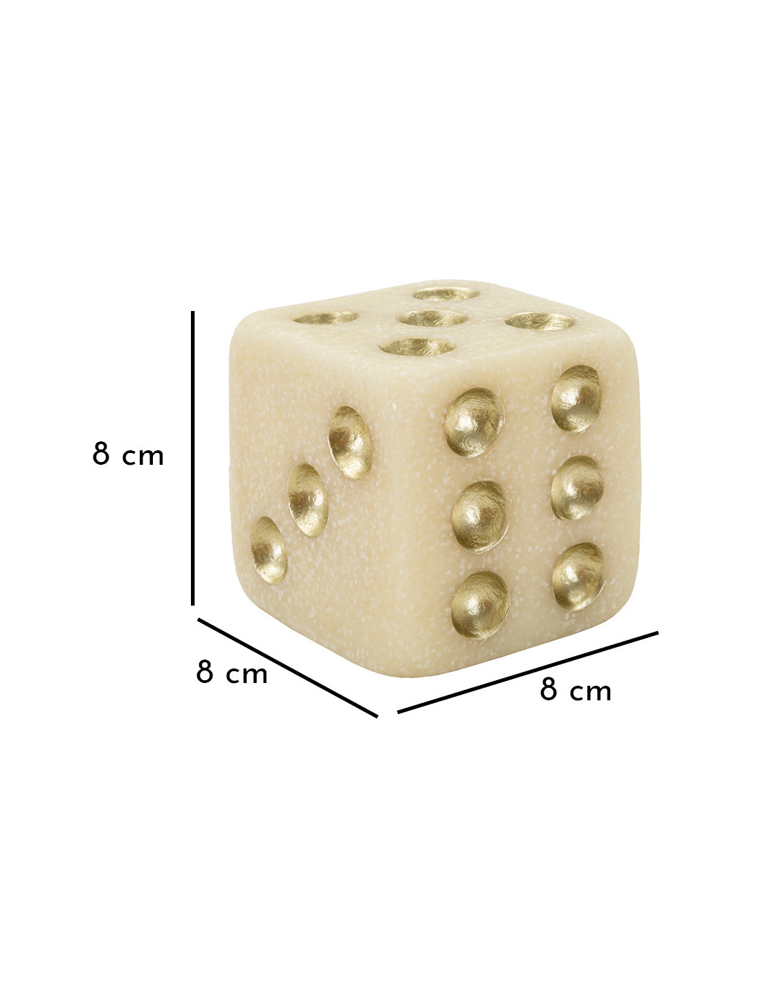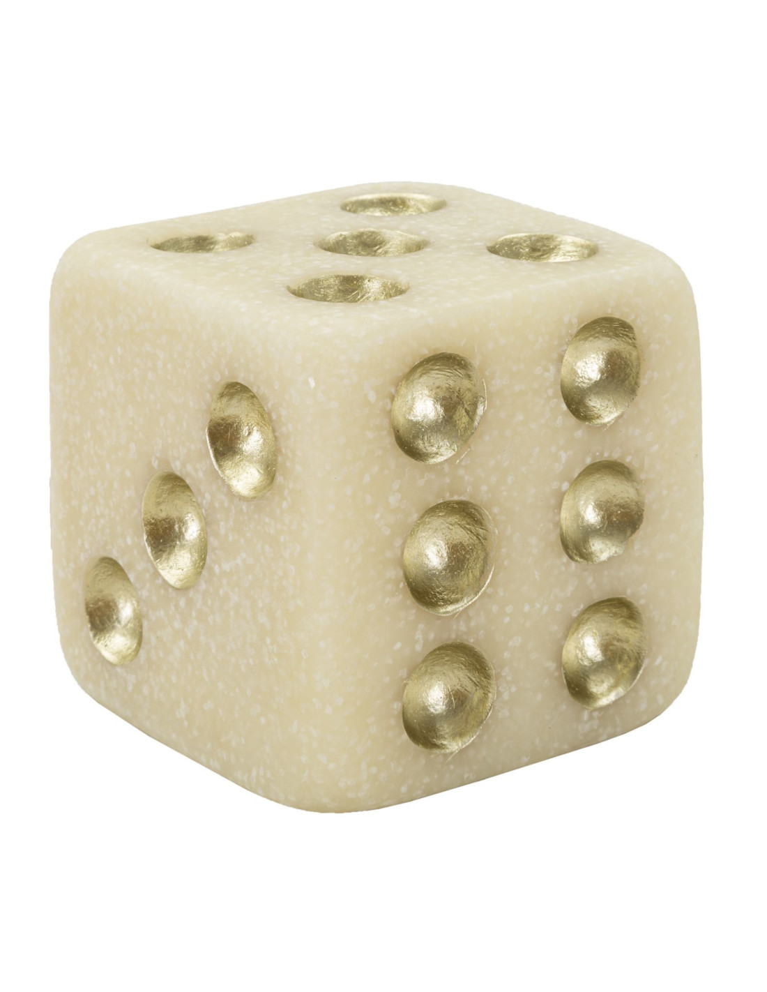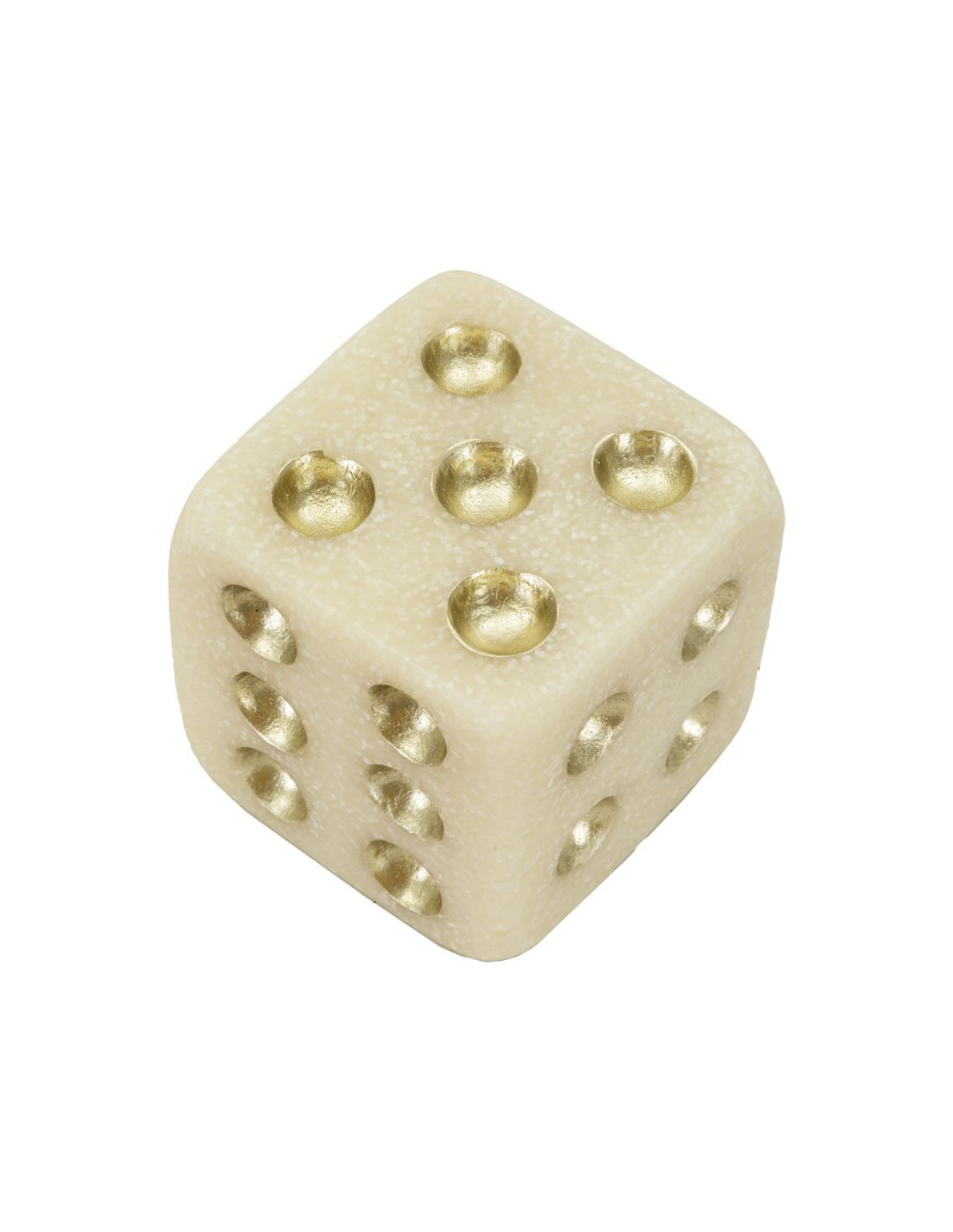 Objet déco moderne Dé 8 cm en Résine Blanc Effet quartz Doré Dado