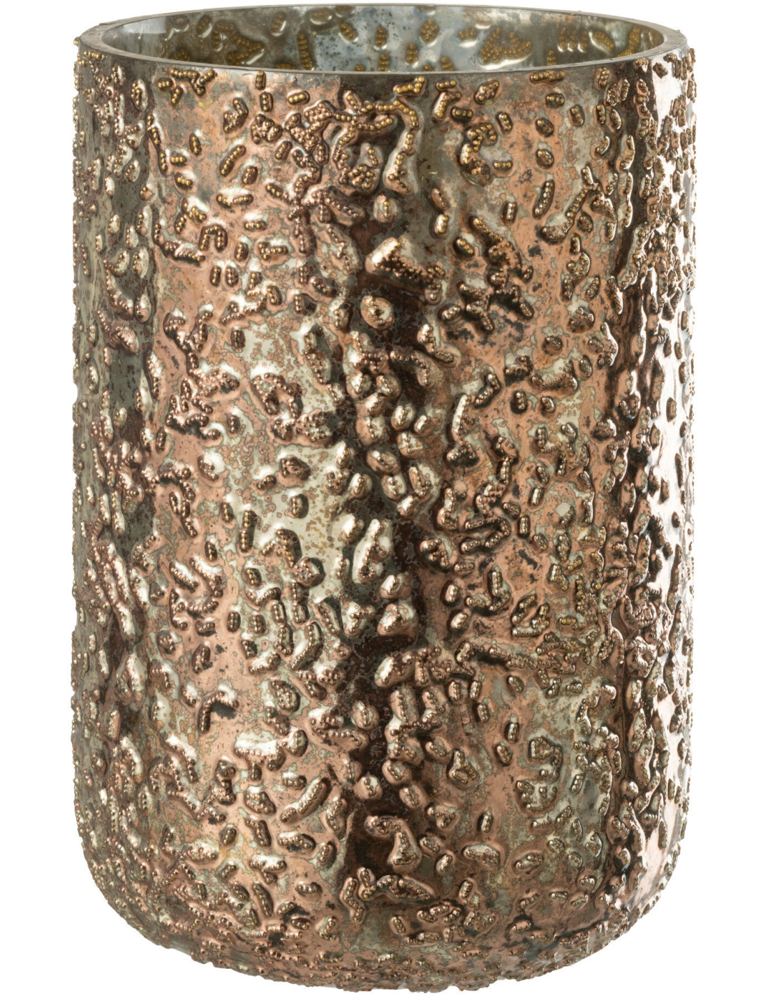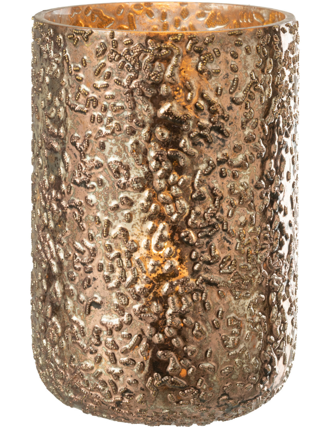 Photophore moderne en verre effet cuivré H20 cm