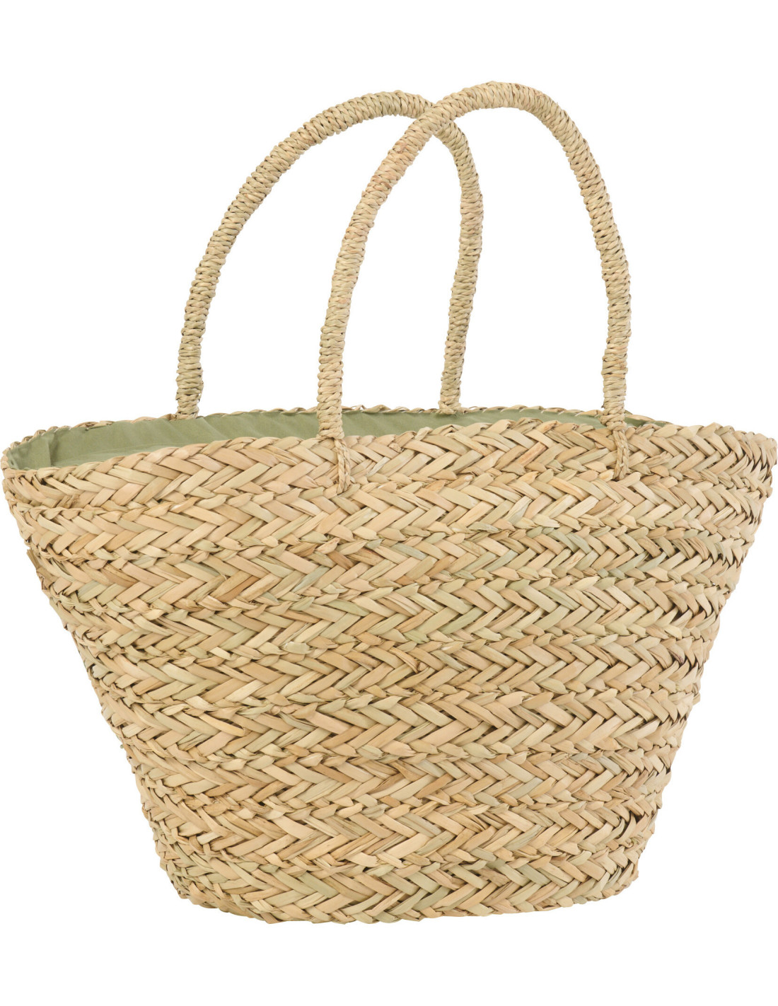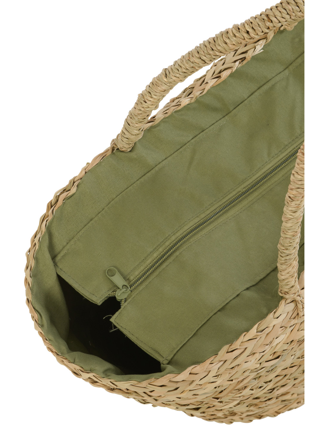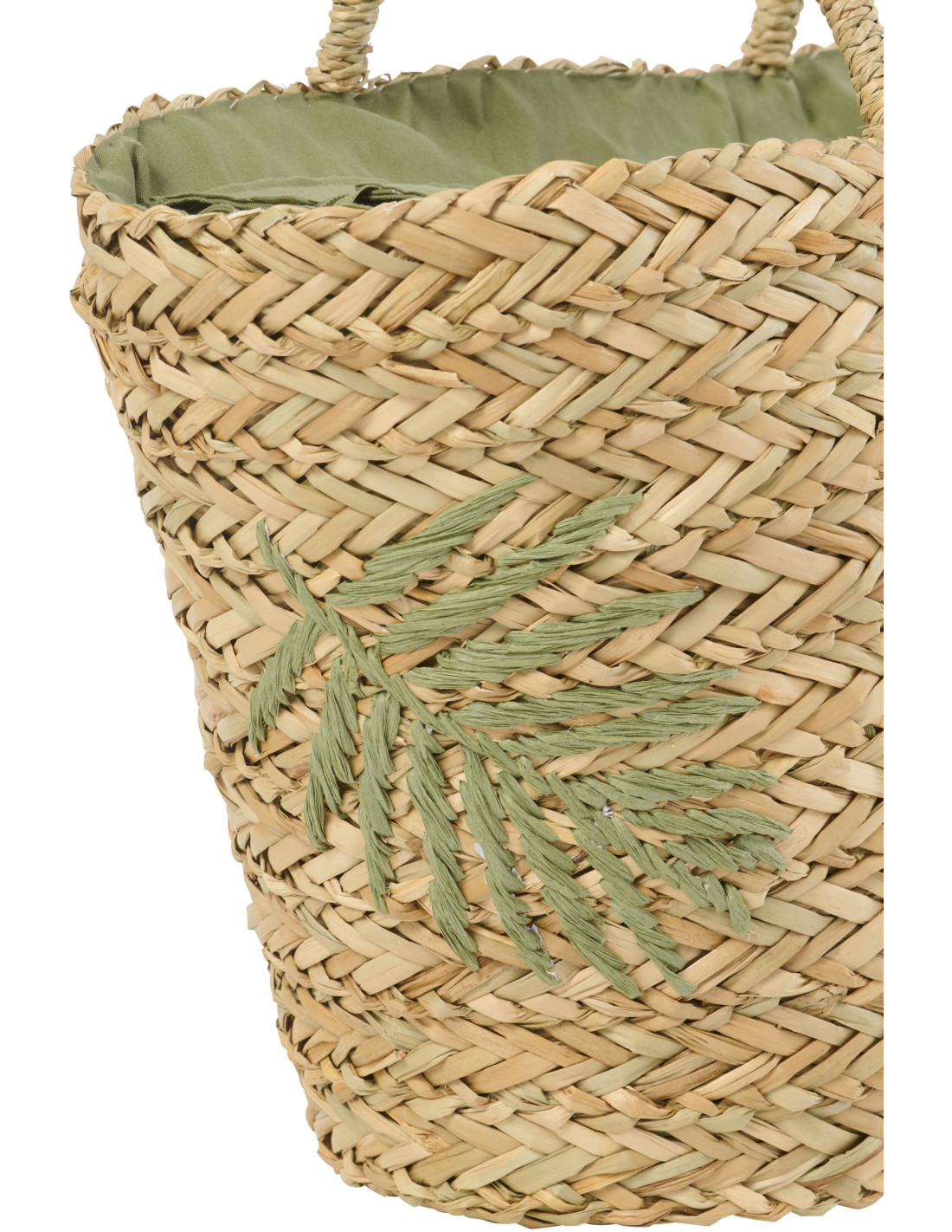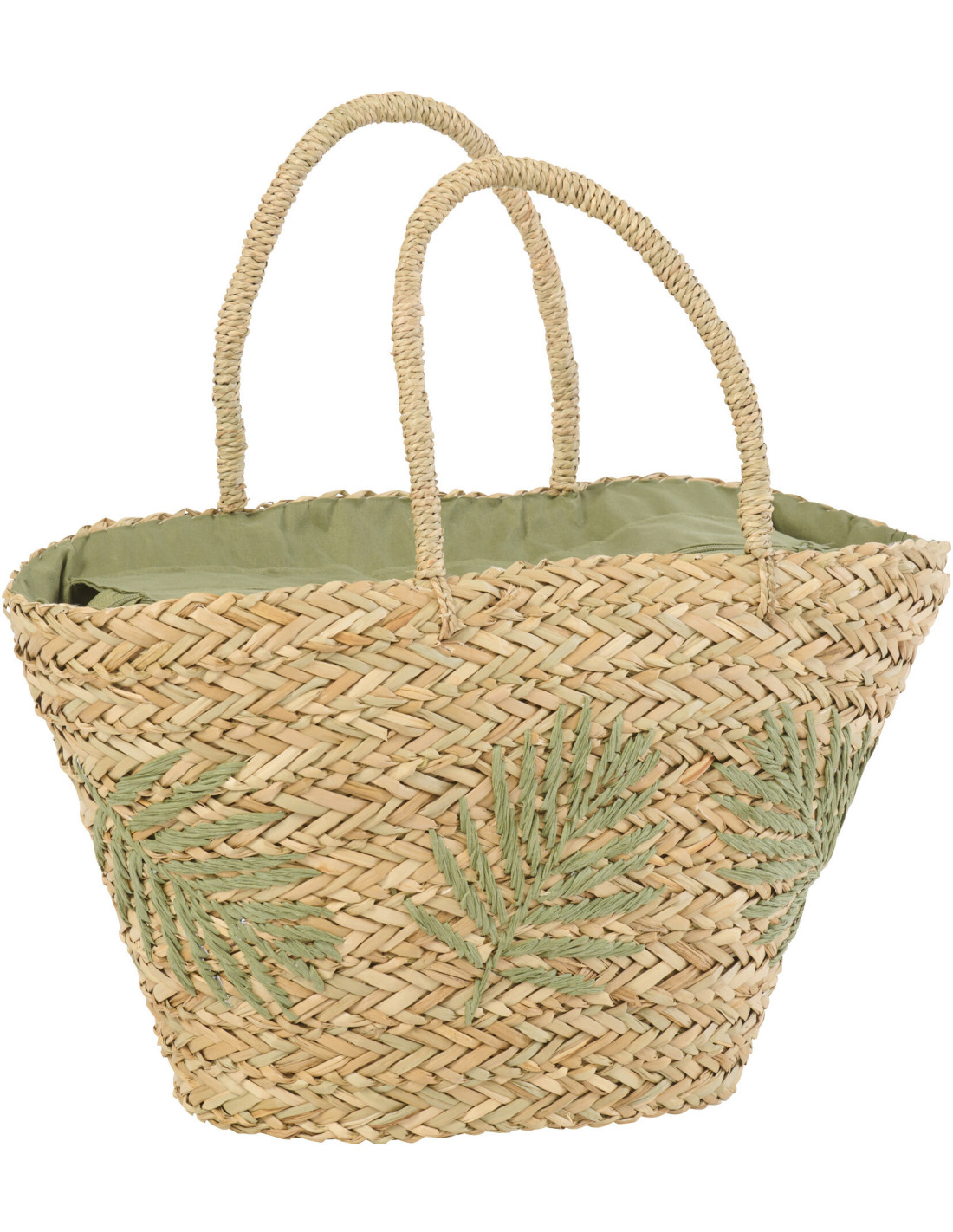 Panier Cabas tropical chic Jonc de mer Naturel Tressé Vert olive Motif feuilles Palmedo