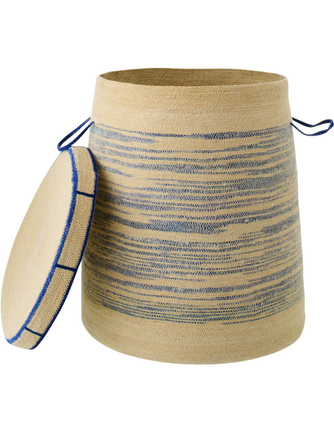 Un volume généreux pensé pour organiser sans compromis sur le style. Ce panier coffre en fibres naturelles, souligné de nuances bleues, allie fonctionnalité et esthétisme dans une silhouette élégante et structurée.