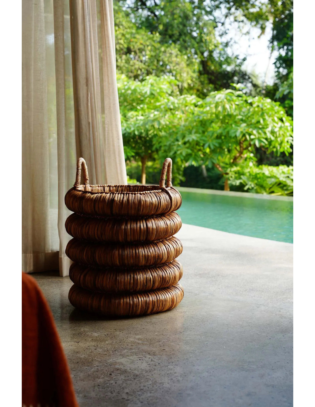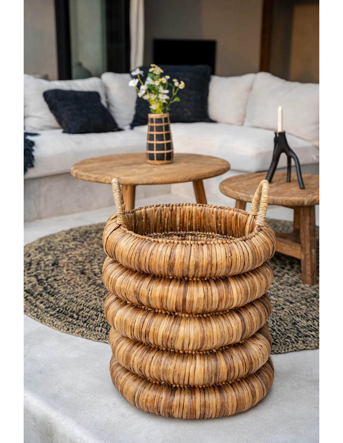 Panier de rangement 2 anses bohème chic Rond 54x66 Jacinthe d'eau Naturel Tressé The Chunky