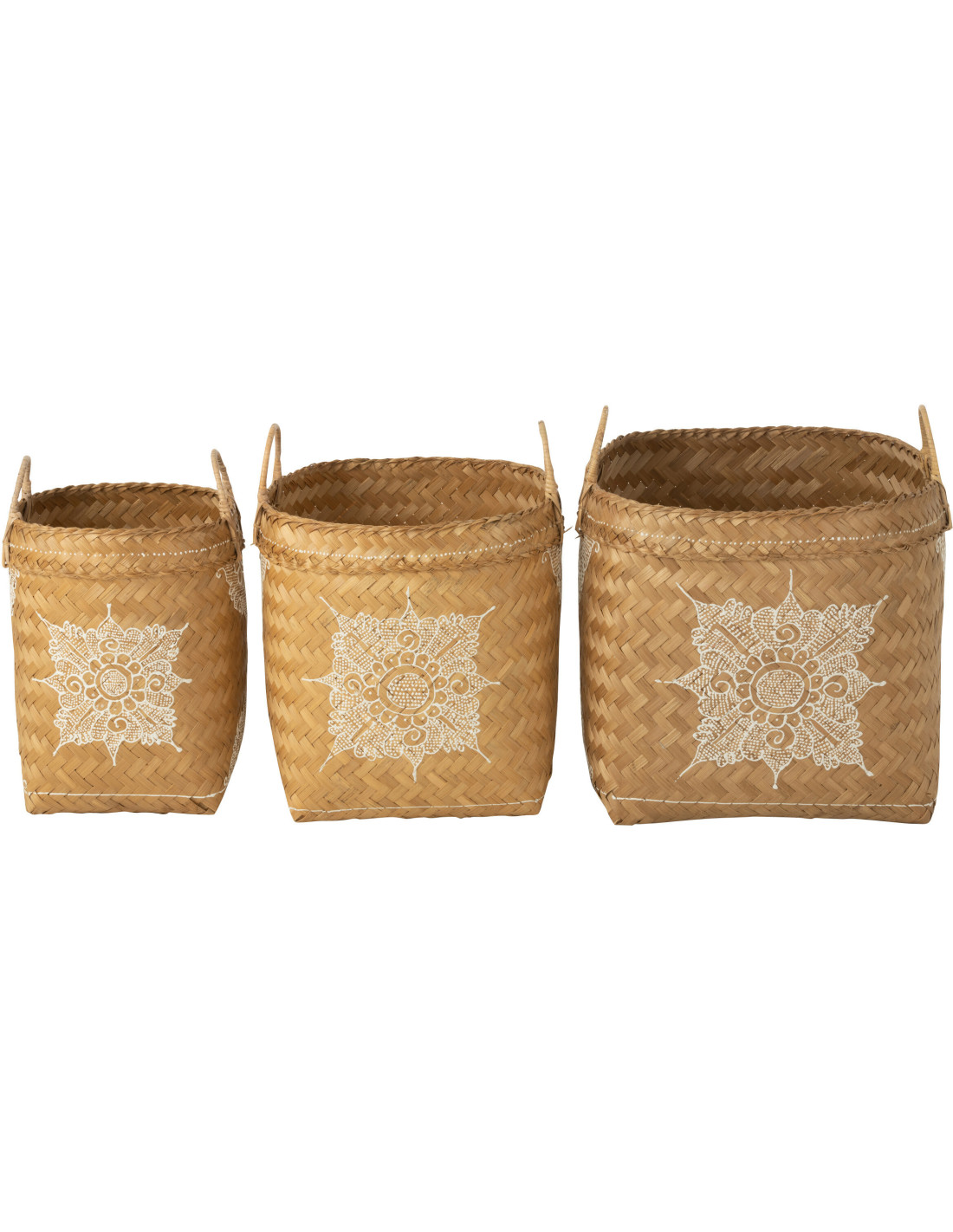 Panier de rangement avec anses Carré en Bambou Naturel Blanc Motif fleur Loreen (Lot de 3) - 1
