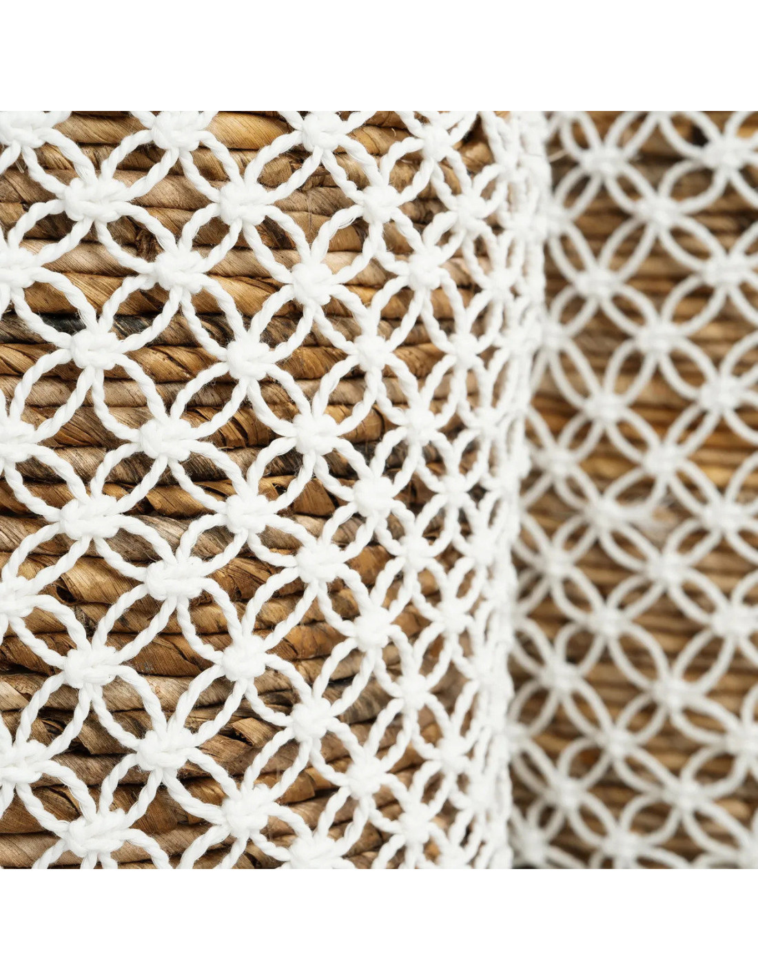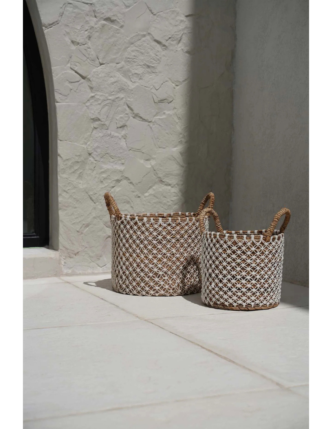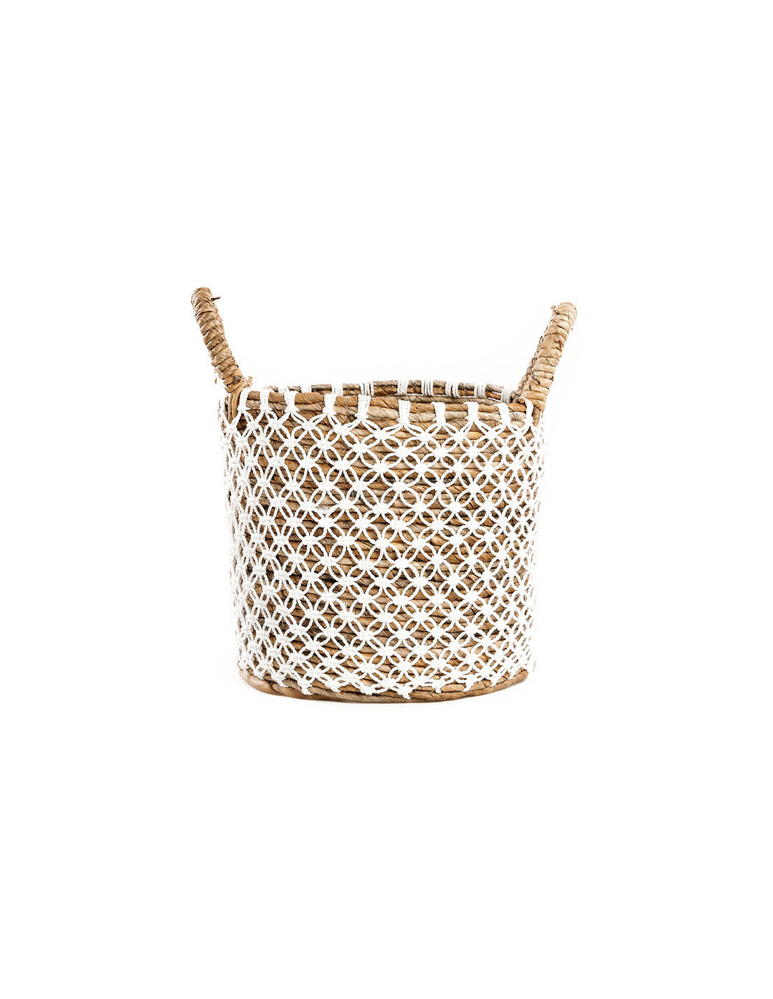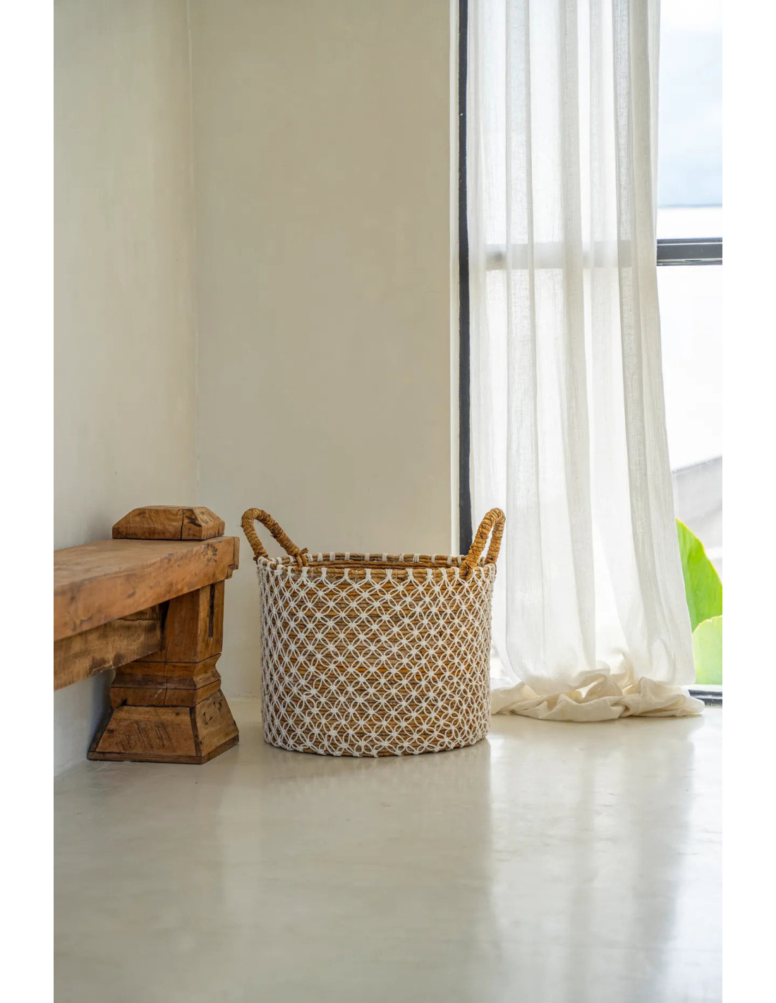 Panier de rangement bohème 2 poignées Rond 29 cm Feuille de bananier Naturel Tressé Coton Blanc The Crossed Stitched Macram