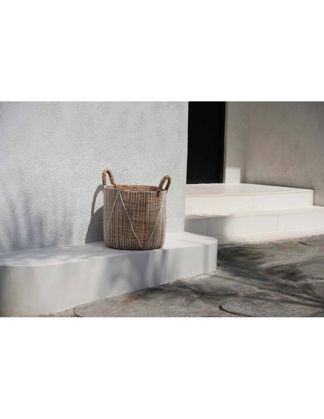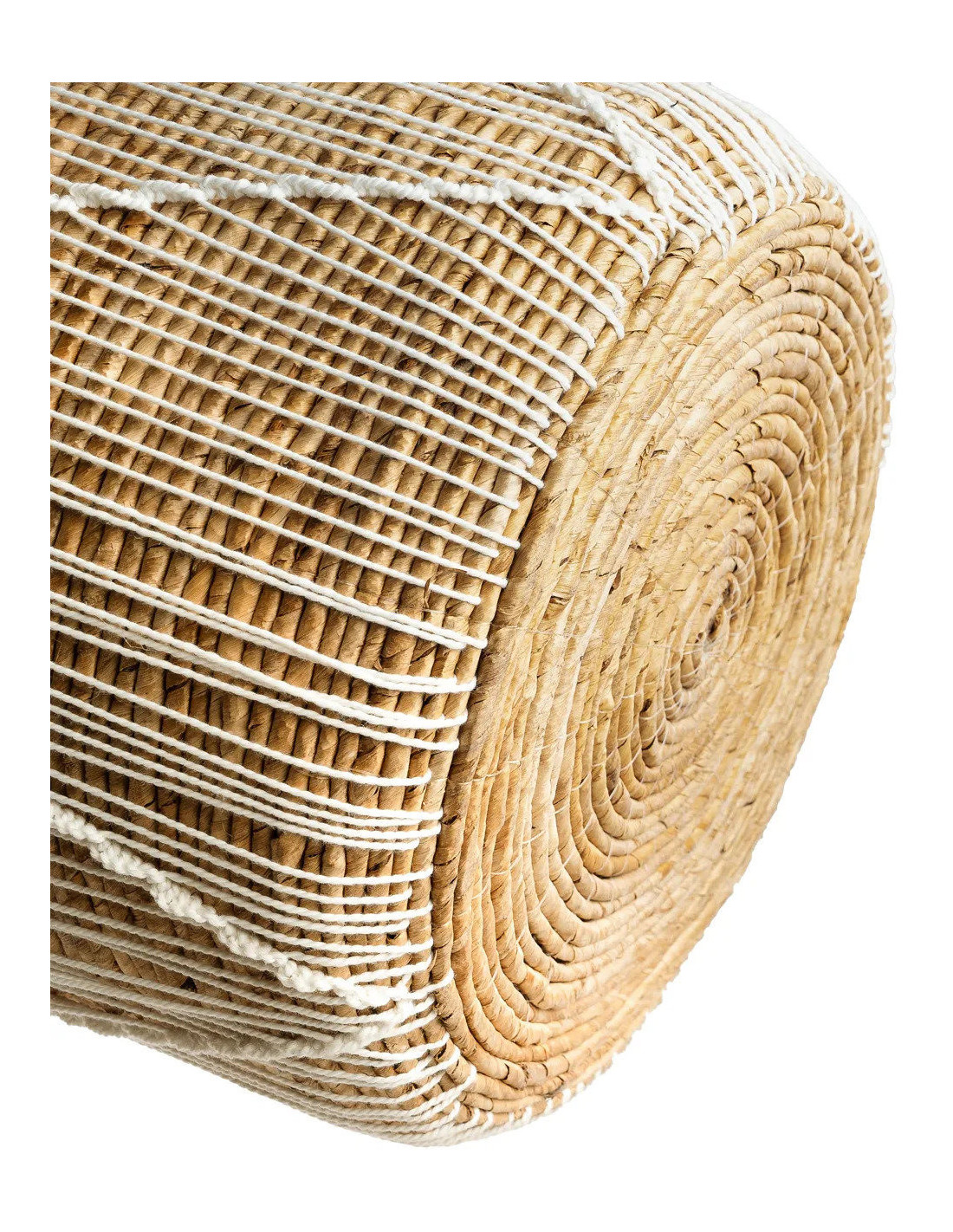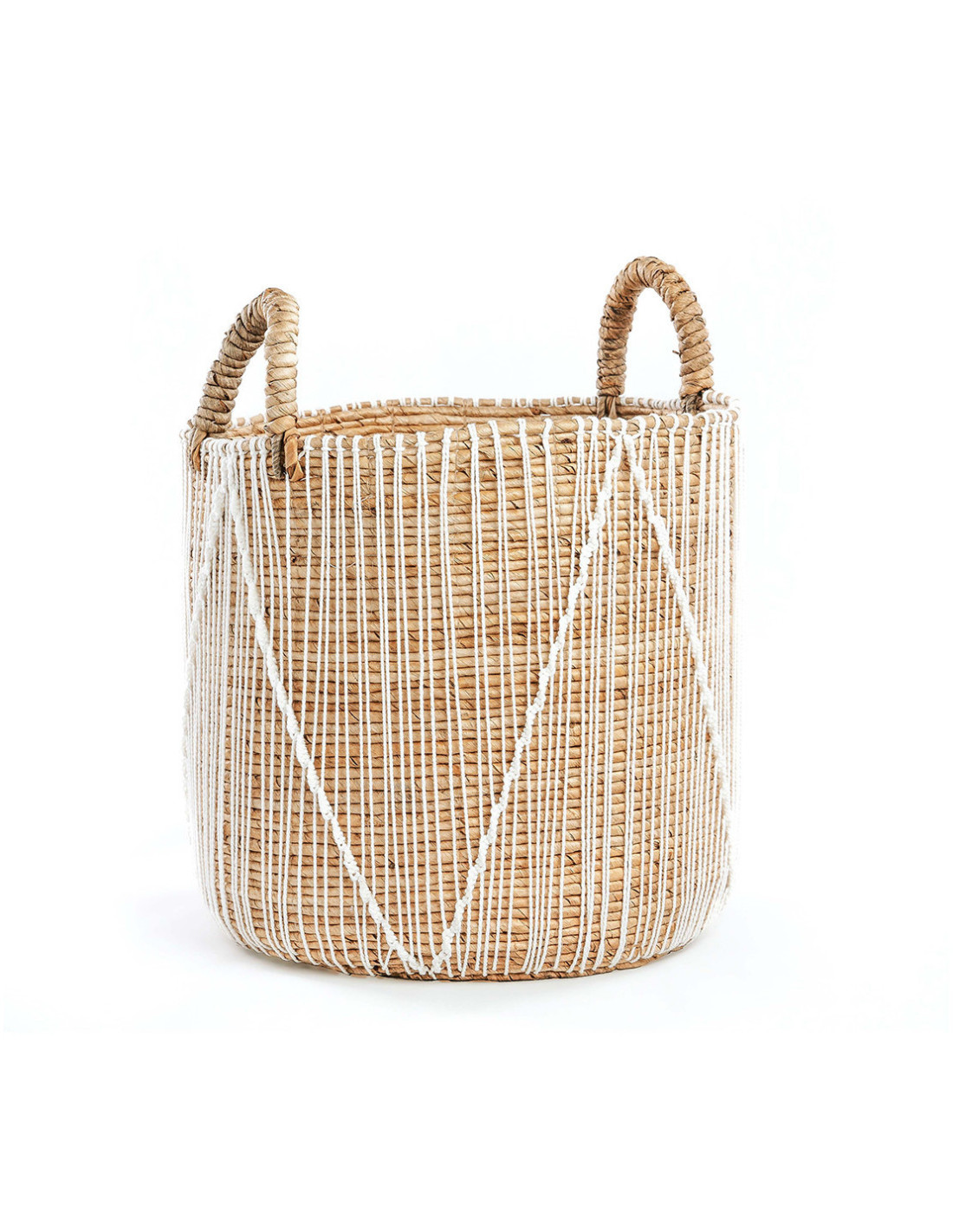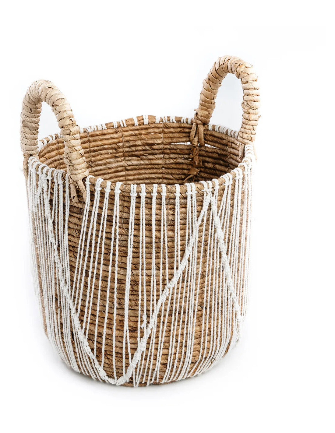 Panier de rangement bohème 2 poignées Rond 35 cm Feuille de bananier Naturel Tressé Coton Blanc The Straight Stitched Macrame