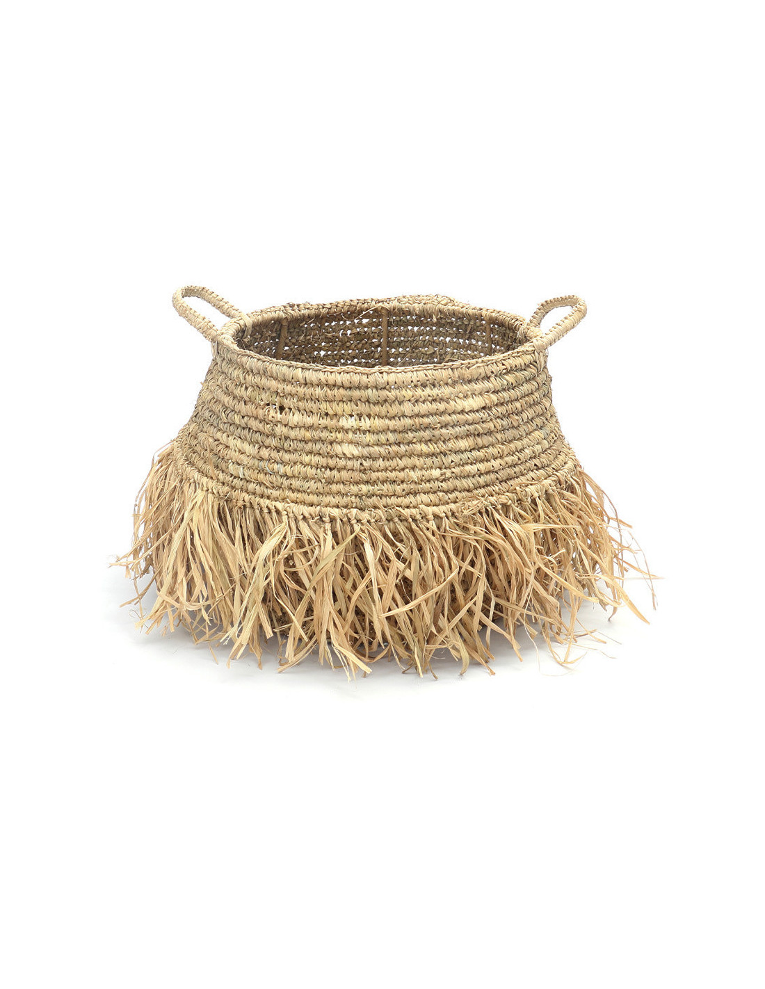 Panier de rangement bohème 2 poignées Rond 36 cm Raphia Naturel Tressé The Raffia