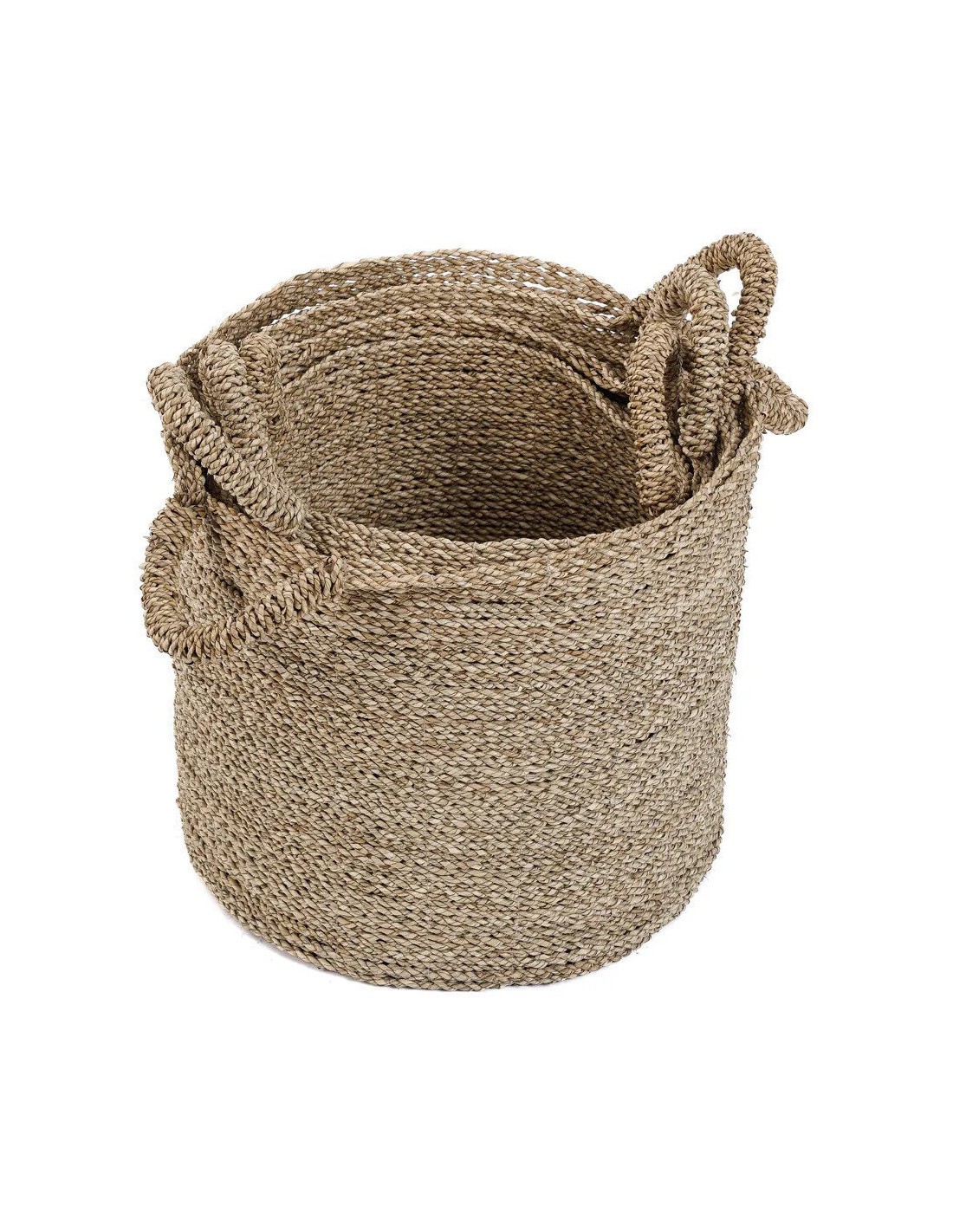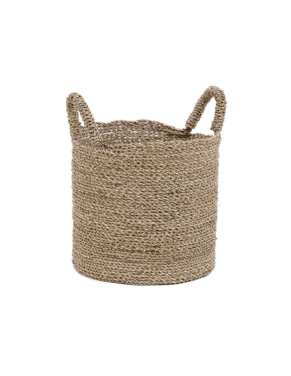 Panier de rangement bohème chic 2 poignées Rond 34 cm Jonc de mer Naturel Tressé The Sensity