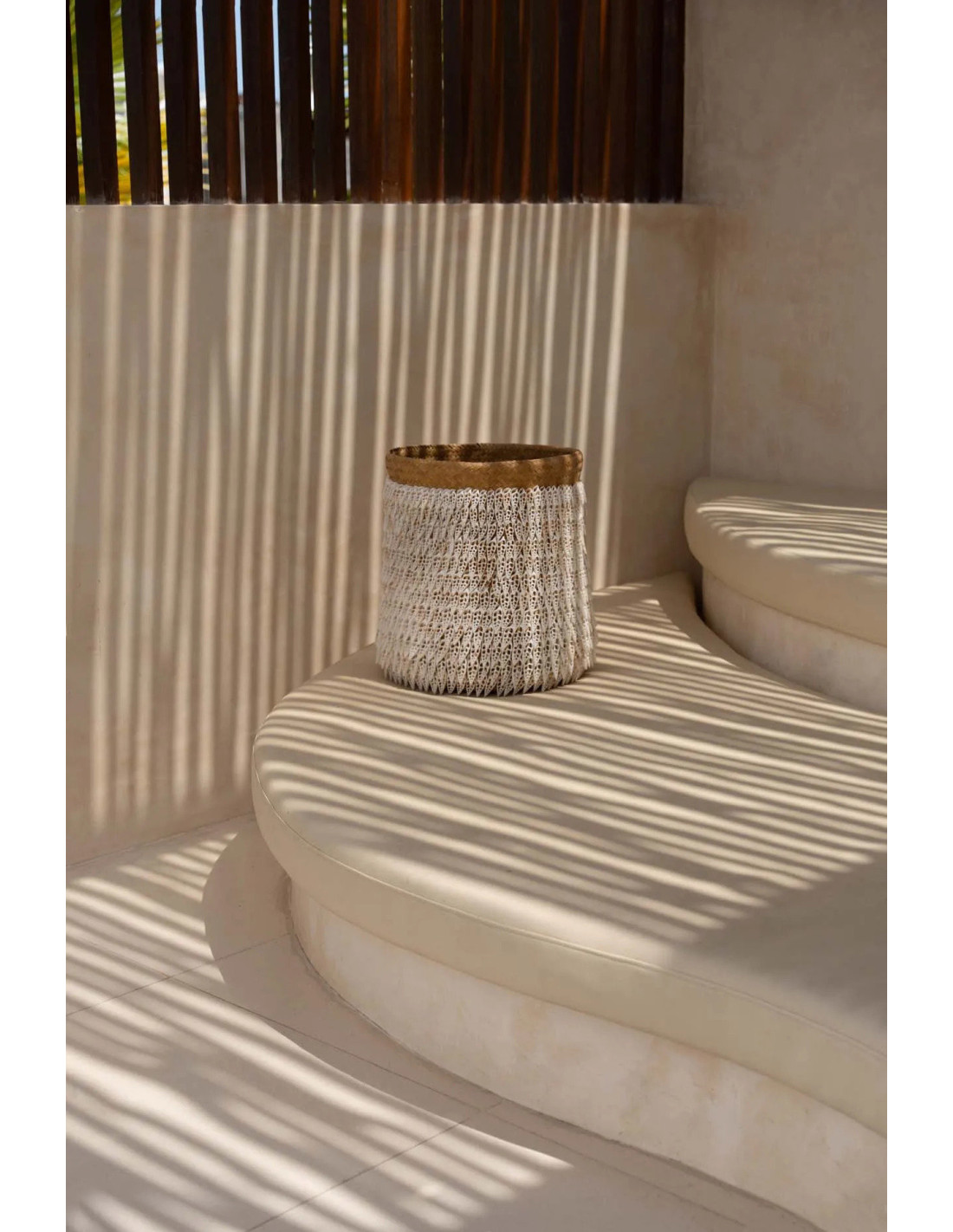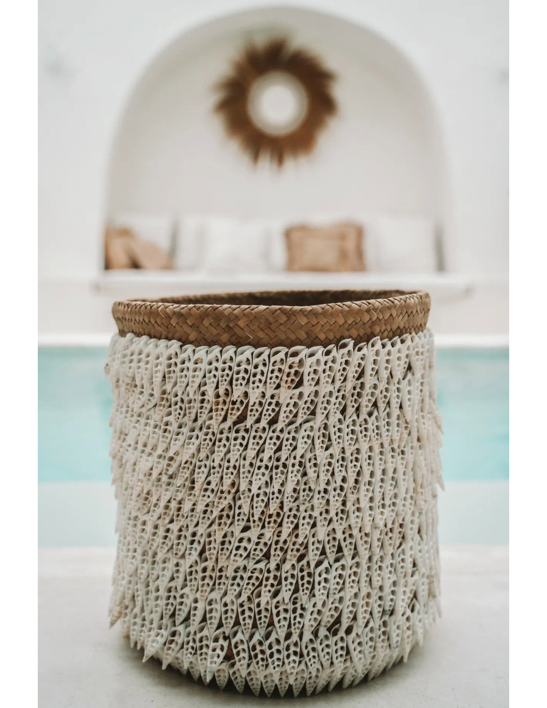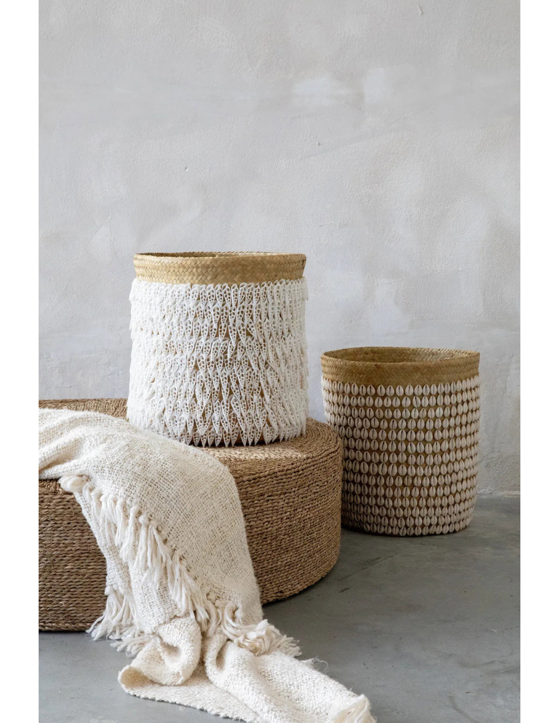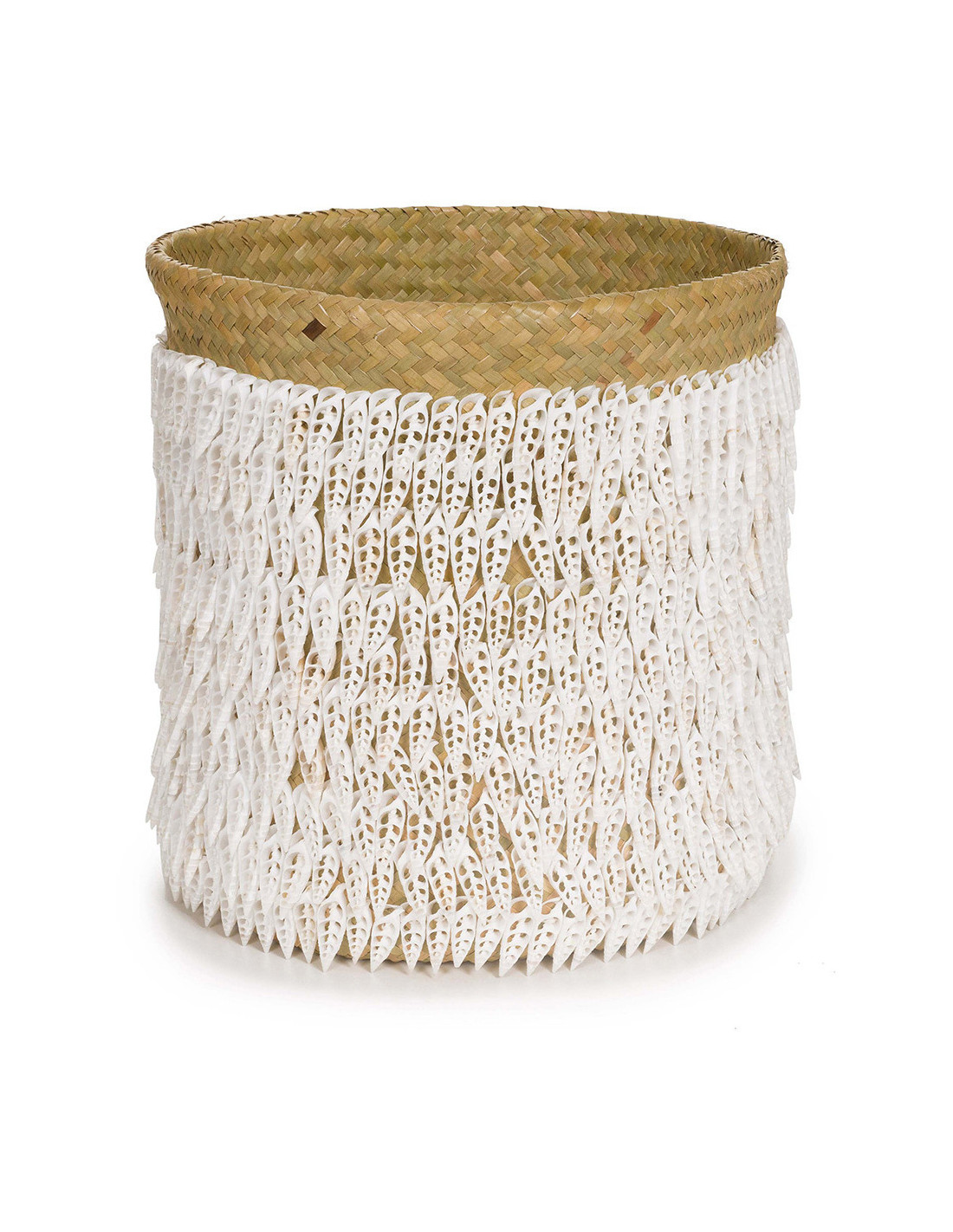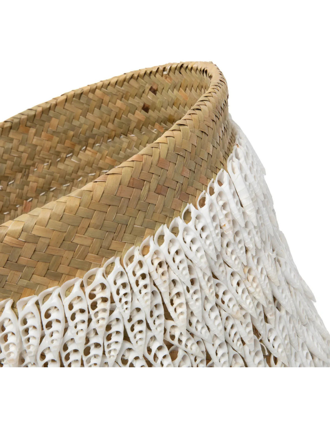 Panier de rangement bohème chic Rond 34 cm Fibre végétale Naturel Tressé Coquillage ajouré The Pandan