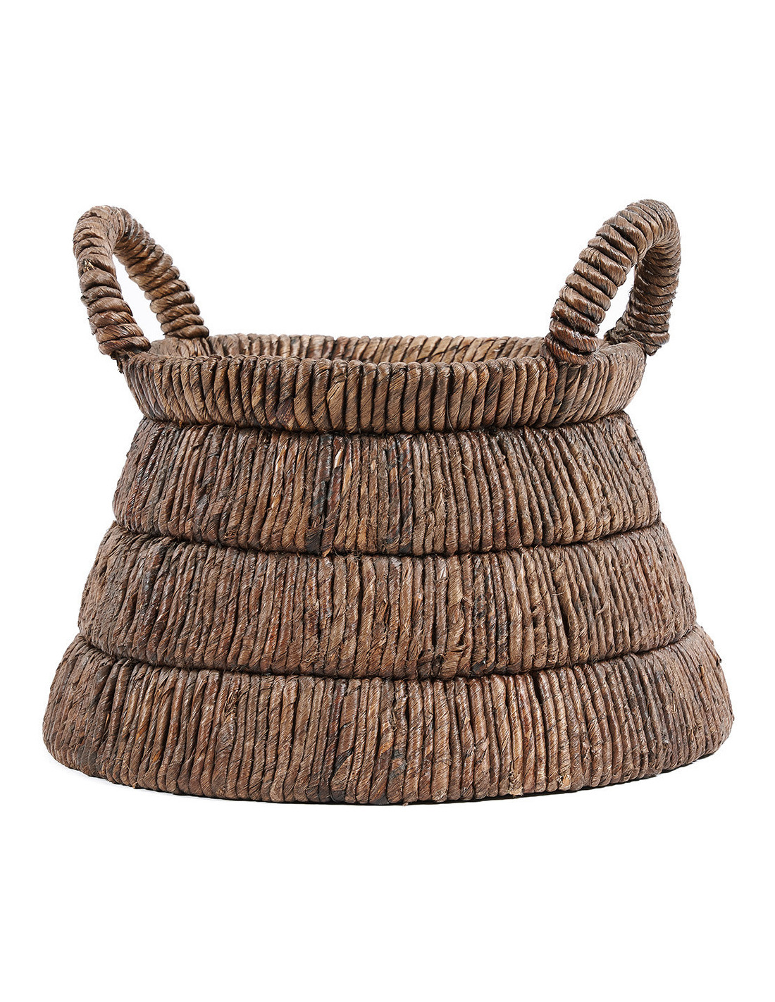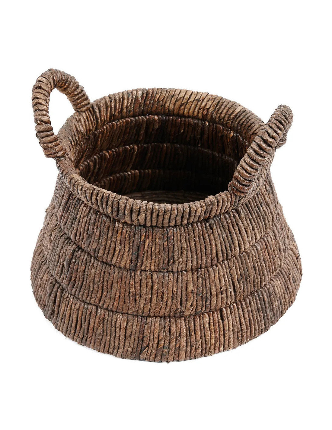 Panier de rangement ethnique chic 2 poignées Rond 42 cm Feuille de bananier Naturel Tressé The Chisomo