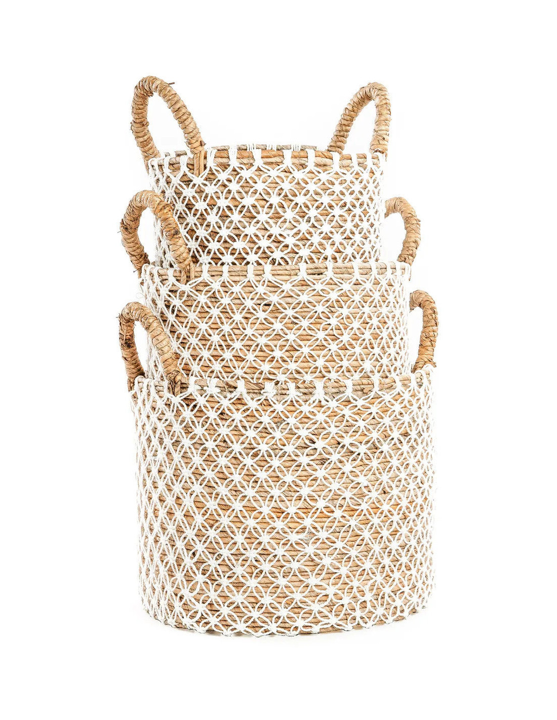 Panier de rangement original 2 poignées Rond 40x31 en Feuille de bananier Naturel Coton Blanc The Macrame