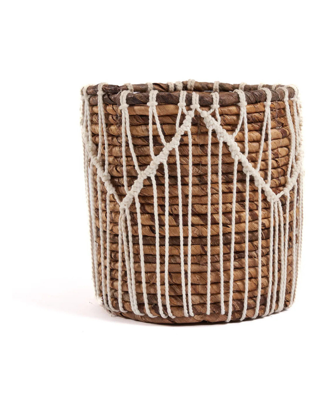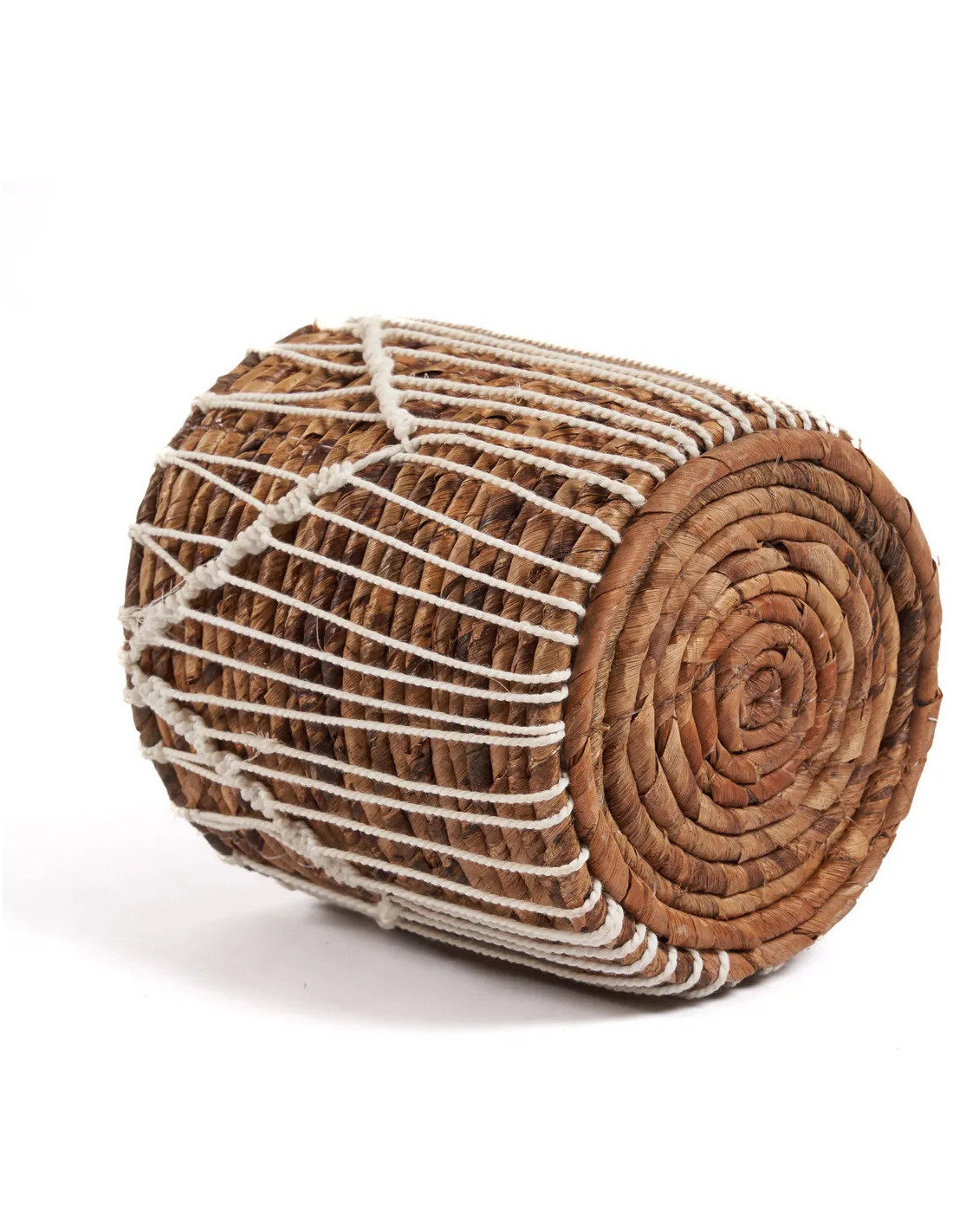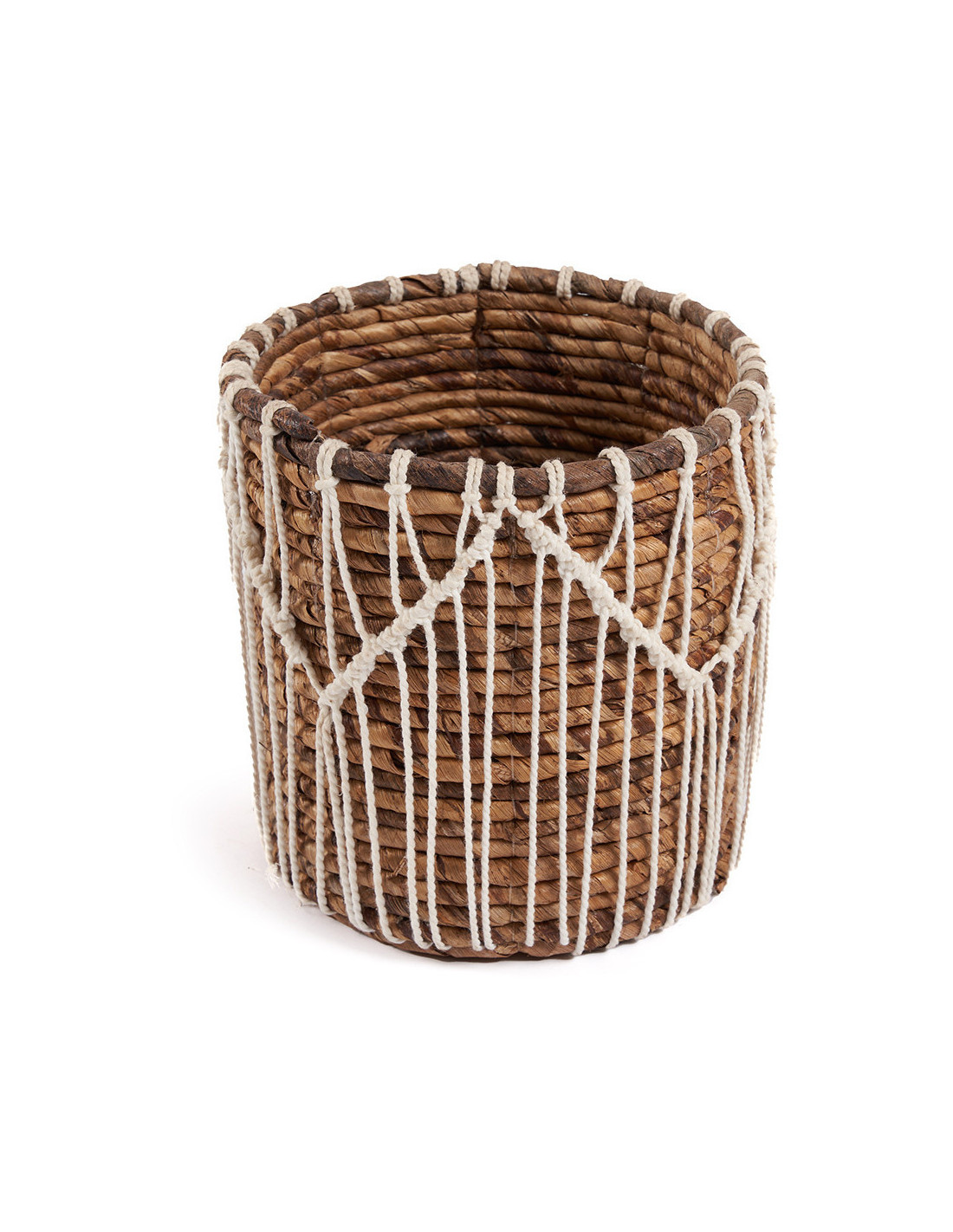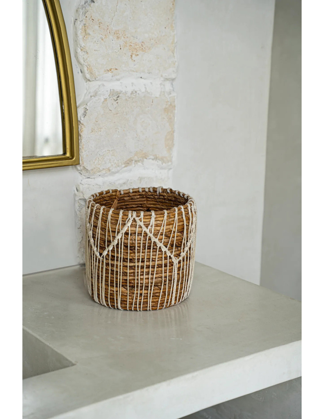 Panier de rangement original macramé Rond 17x19 en Feuille de bananier Naturel Coton Blanc The Macra-mazing