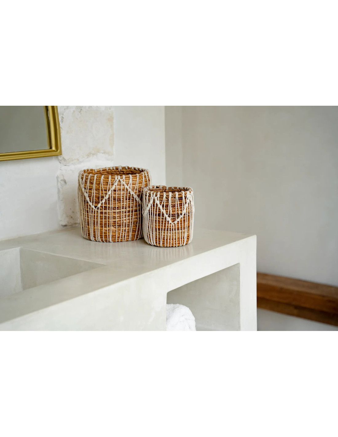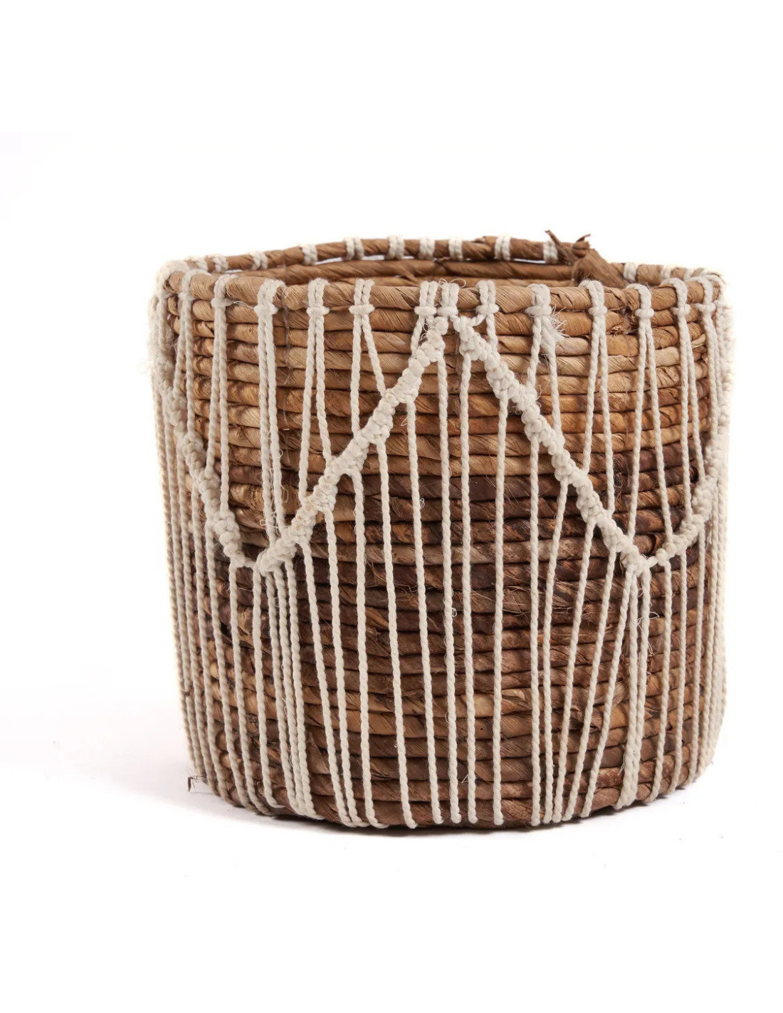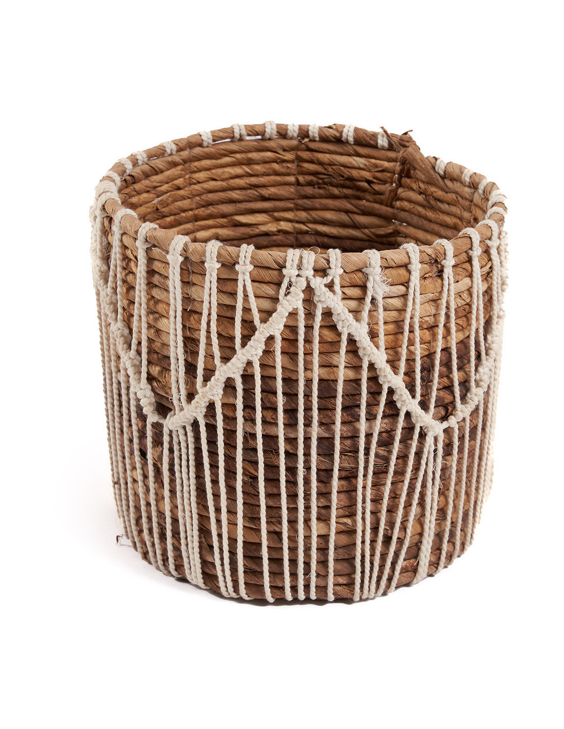 Panier de rangement original macramé Rond 20x20 en Feuille de bananier Naturel Coton Blanc The Macra-mazing