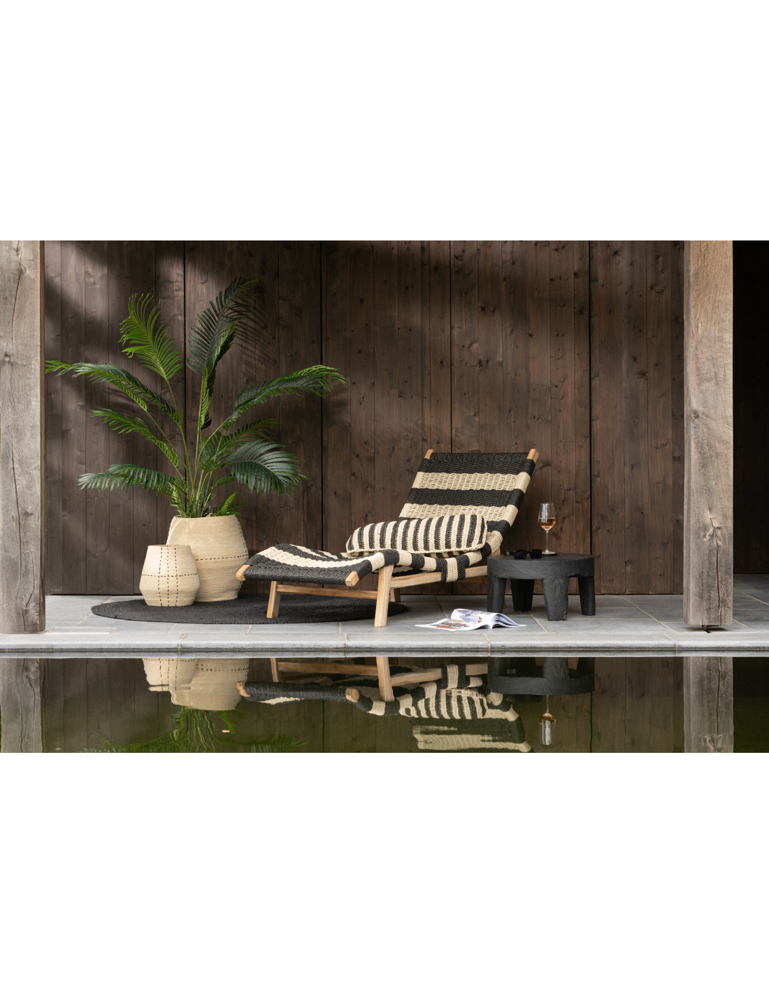 Panier de rangement Ovale en Jonc de mer Naturel Noir Motif tirets Emna (Lot de 2)