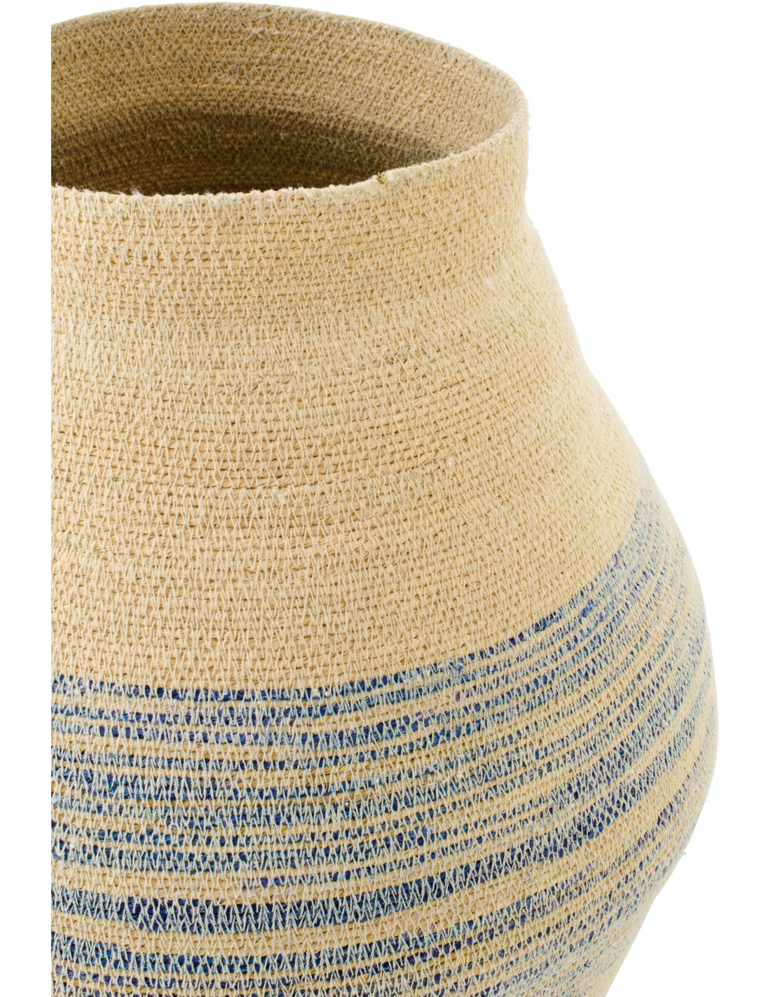 Une silhouette douce qui apporte du rythme à votre intérieur. Ce panier en fibres naturelles, rehaussé de nuances bleues, joue entre utilité et esthétisme pour créer une décoration vivante et équilibrée.