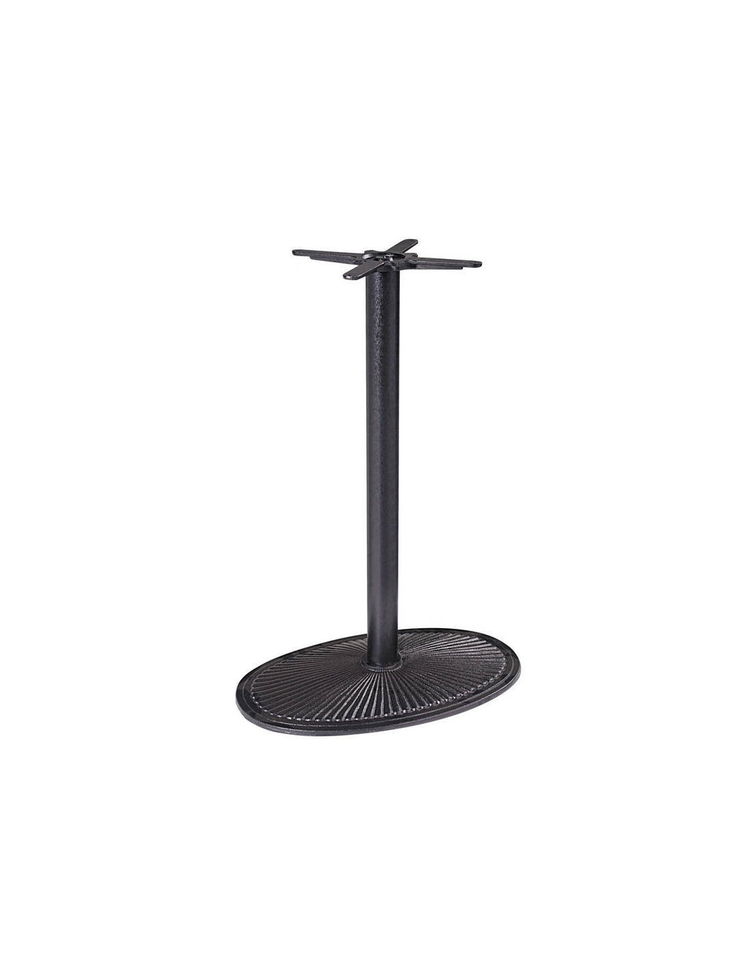 Ce pied est conçu pour accueillir des plateaux rectangulaires jusqu’à 110 x 70 cm et ovales jusqu’à 120 x 80 cm. Il s’adapte à de nombreux usages, du coin repas à la table de restaurant.