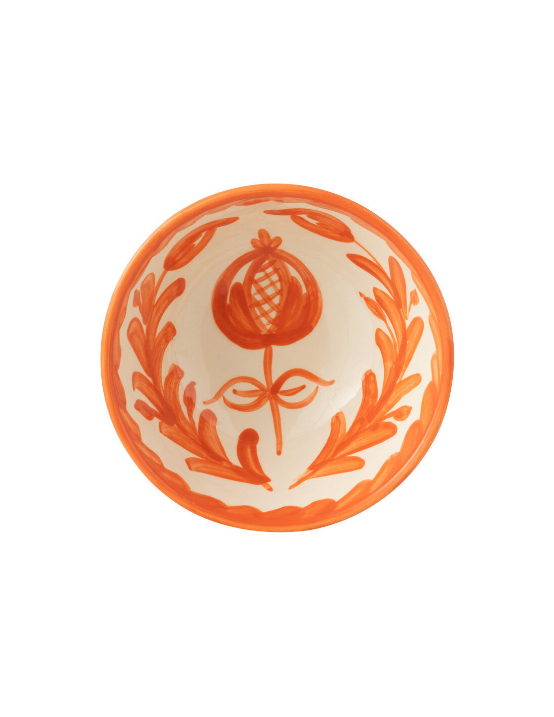 Petit Bol rond 14 cm en Céramique Orange Blanc Motif fleur Granada