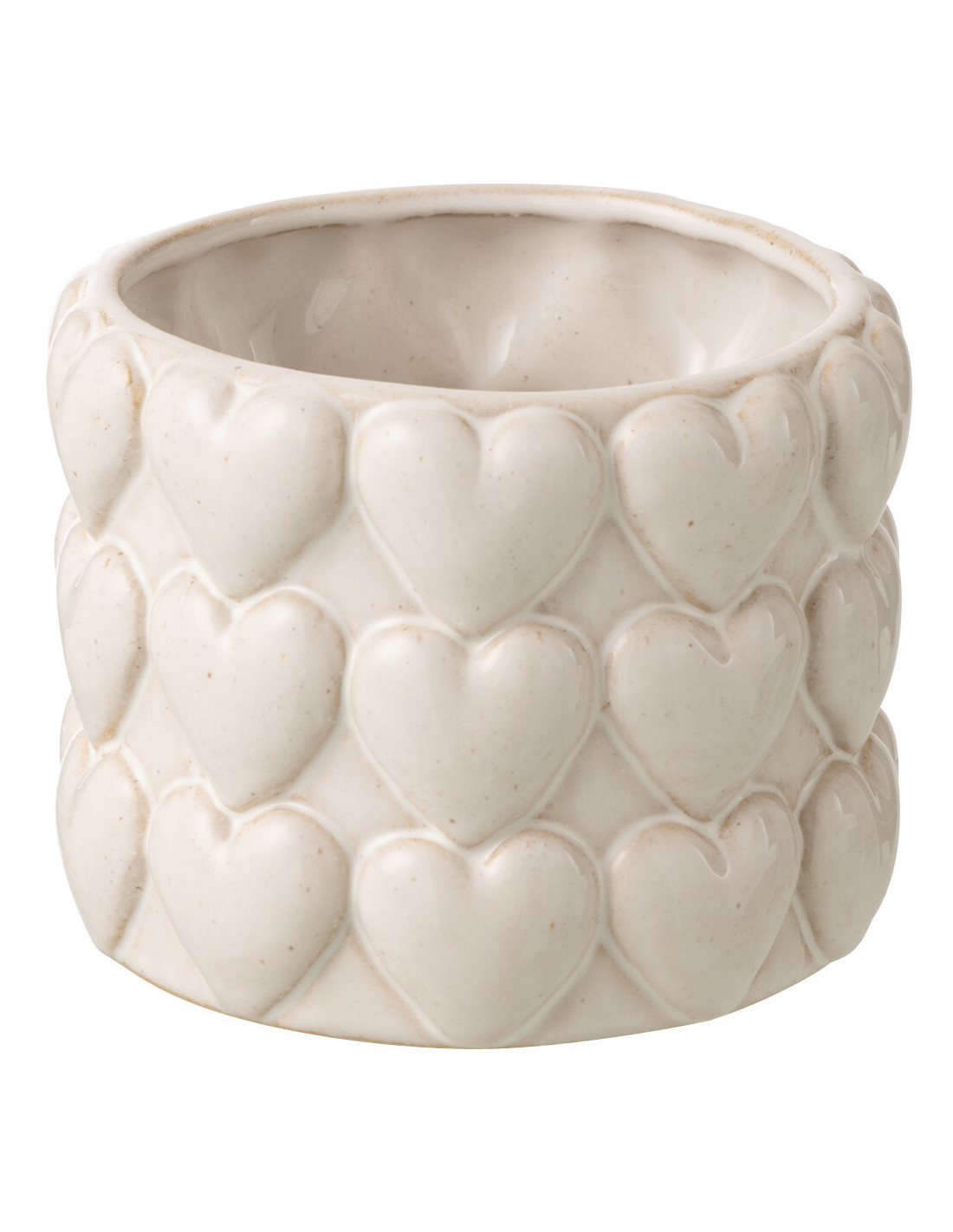 Petit Cache-pot Coeurs Rond D 13 cm Grès Blanc écru Olyra