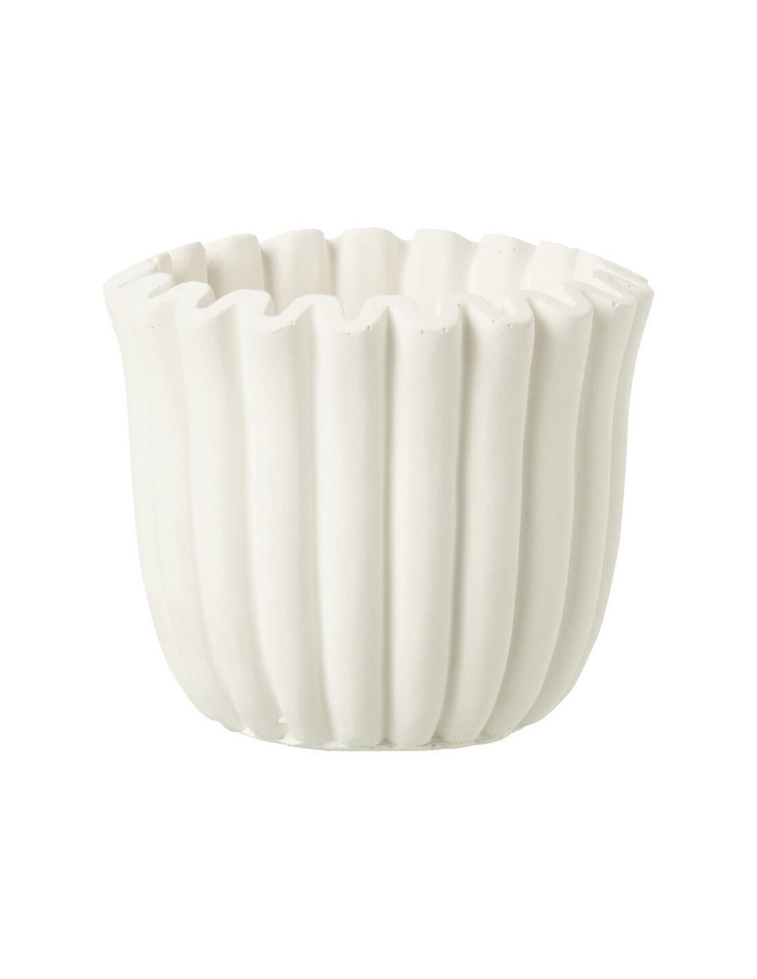 Petit Cache pot moderne côtelé Rond Diamètre 11 cm en Ciment Blanc Ondrelle