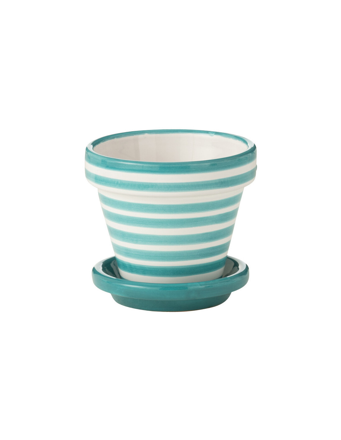 Petit Cache pot original extérieur Rond Diamètre 17 cm en Céramique Bleu aqua Blanc Motif lignes Granada - 1
