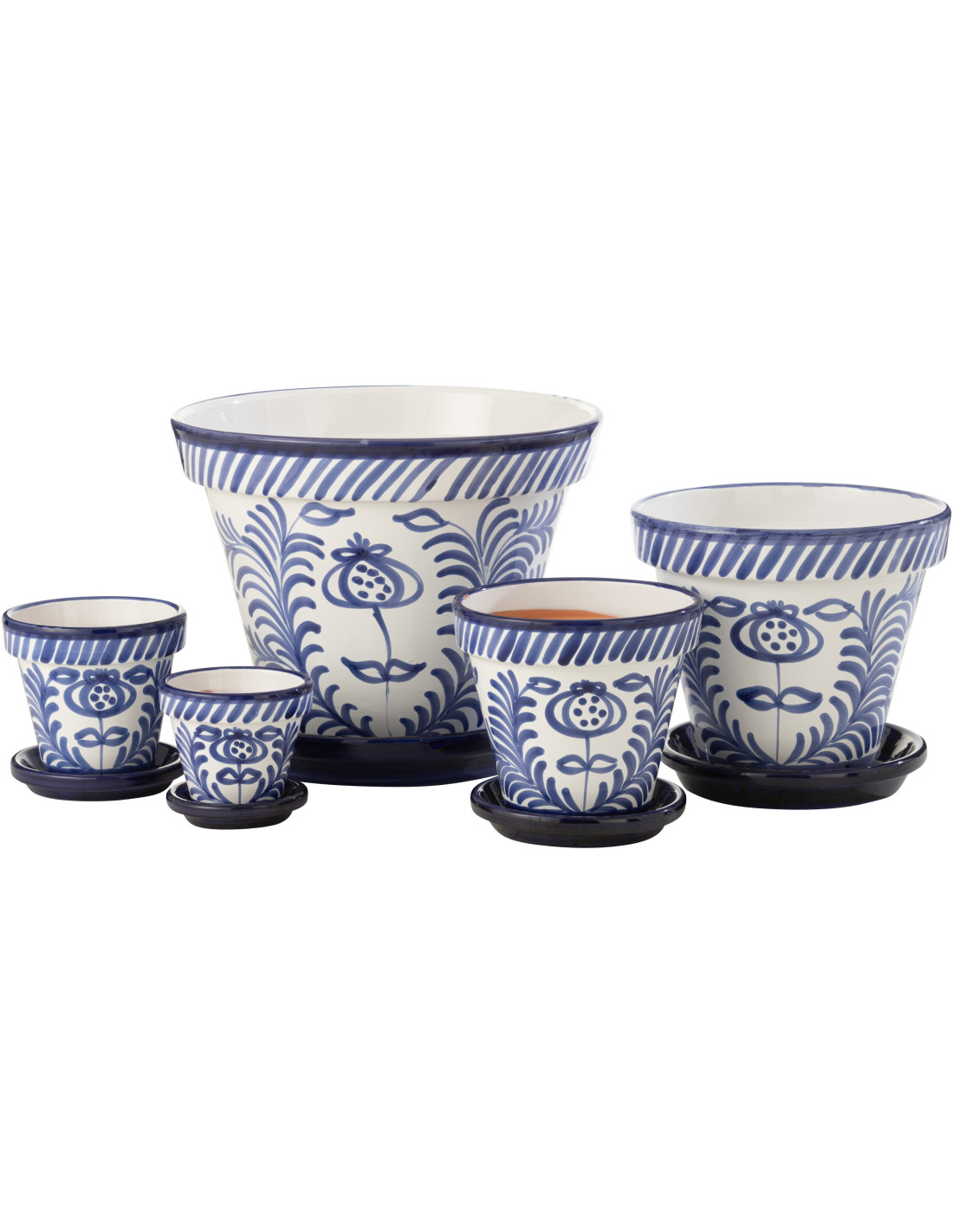 Petit Cache pot original extérieur Rond Diamètre 17 cm en Céramique Bleu cobalt Blanc Motif fleur Granada - 5
