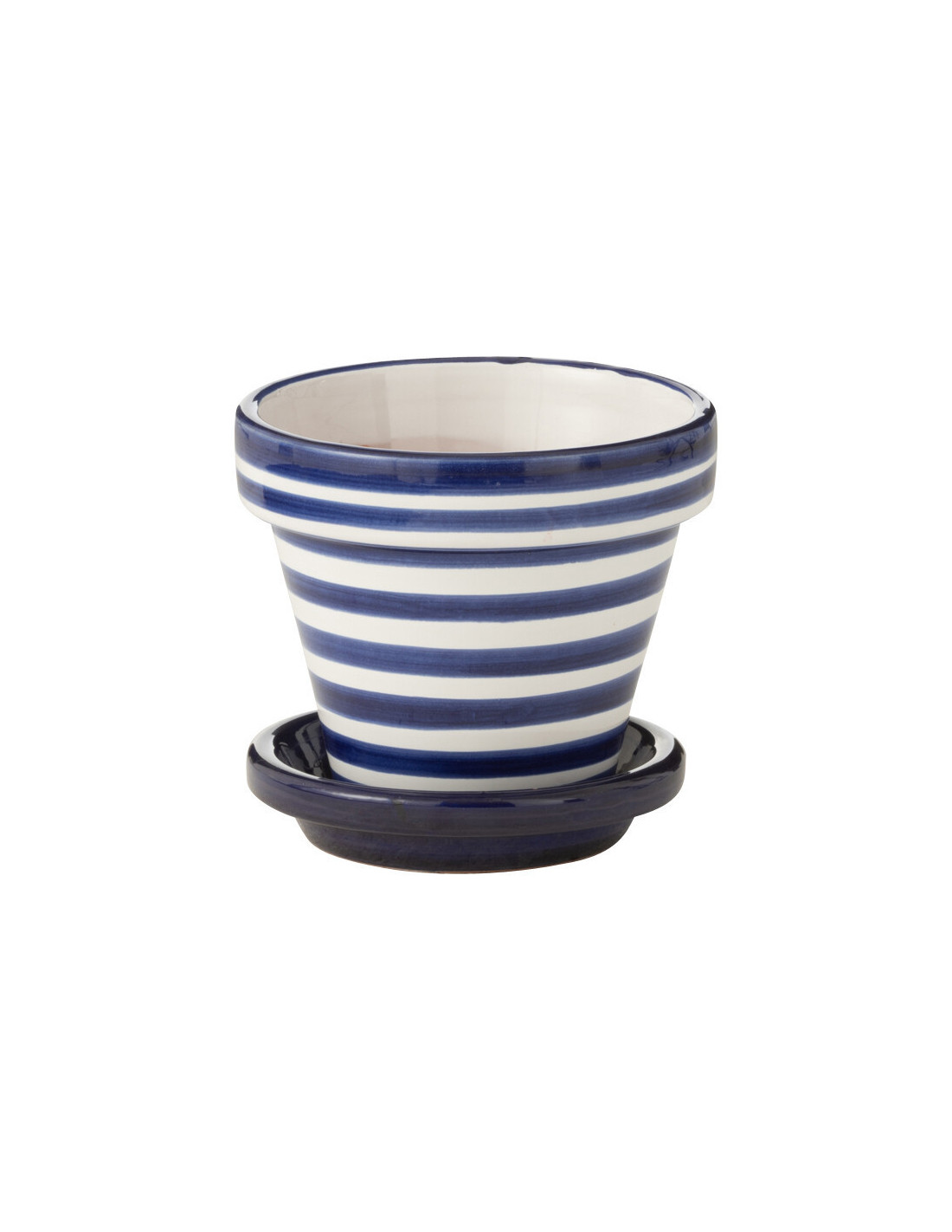 Petit Cache pot original extérieur Rond Diamètre 17 cm en Céramique Bleu cobalt Blanc Motif lignes Granada