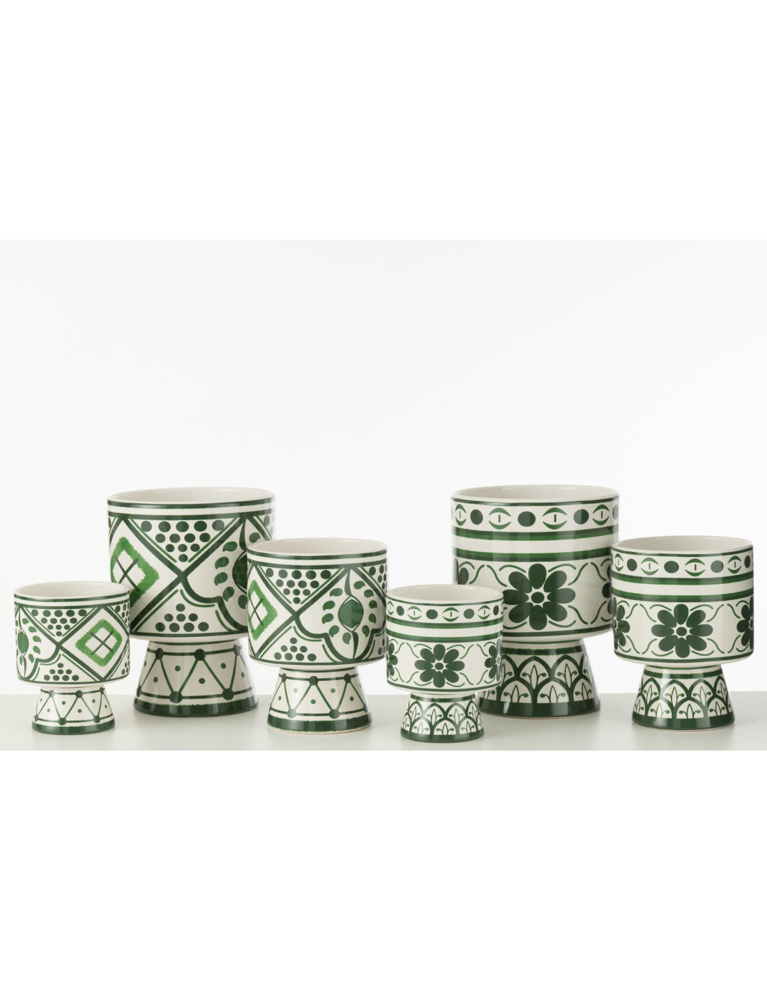 Petit Cache pot sur pied égéen Rond Diamètre 13 cm en Céramique Vert Blanc Rhodes (Lot de 2) - 1