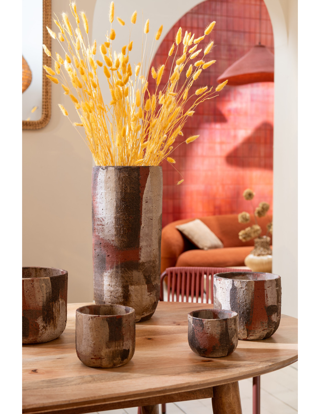 Petit Cache pot vintage Rond Diamètre 15 cm en Céramique Marron Beige Noir Miltos