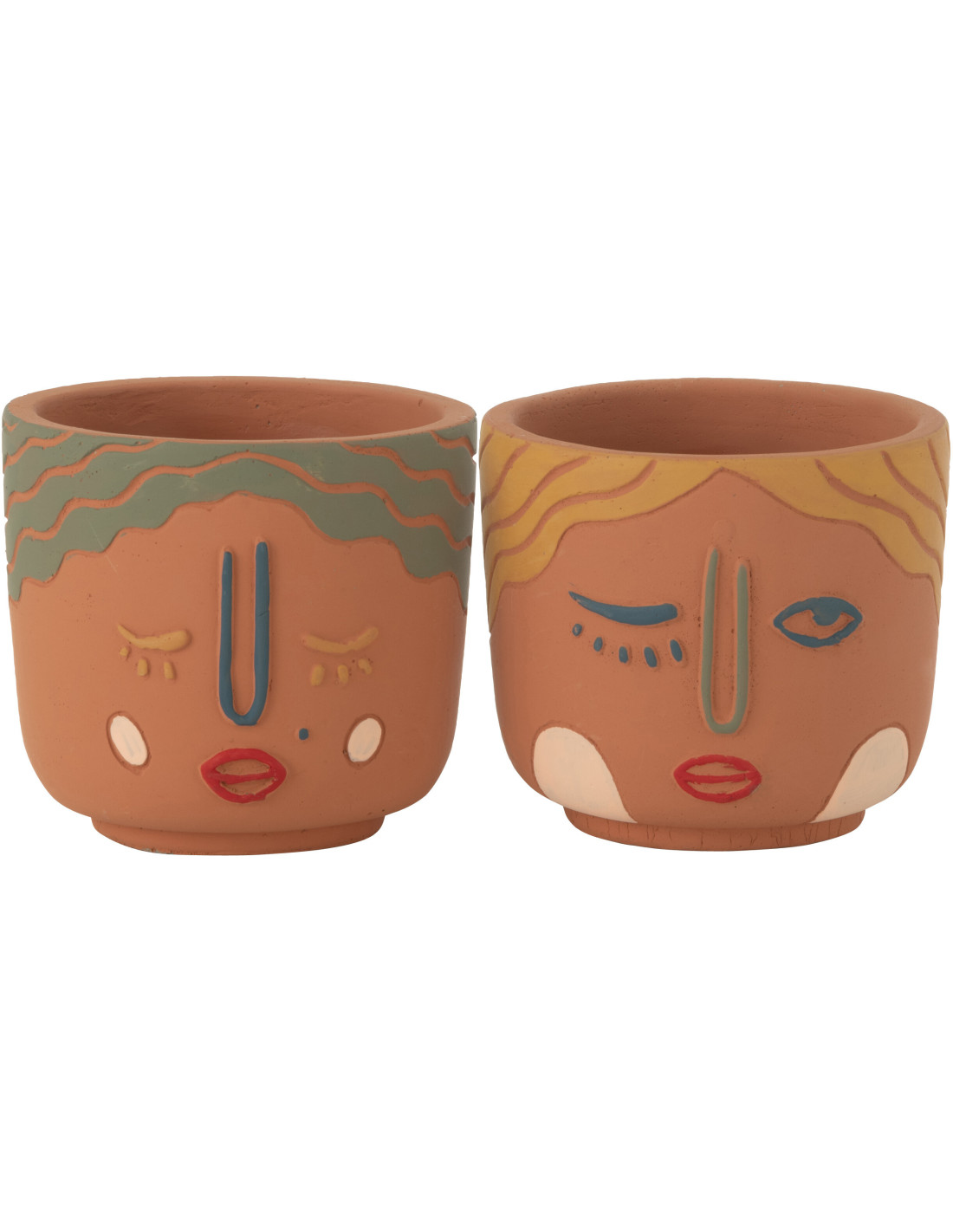 Petit Cache pot Visage Rond Diamètre 11 cm en Ciment Terracotta Double (Lot de 2)