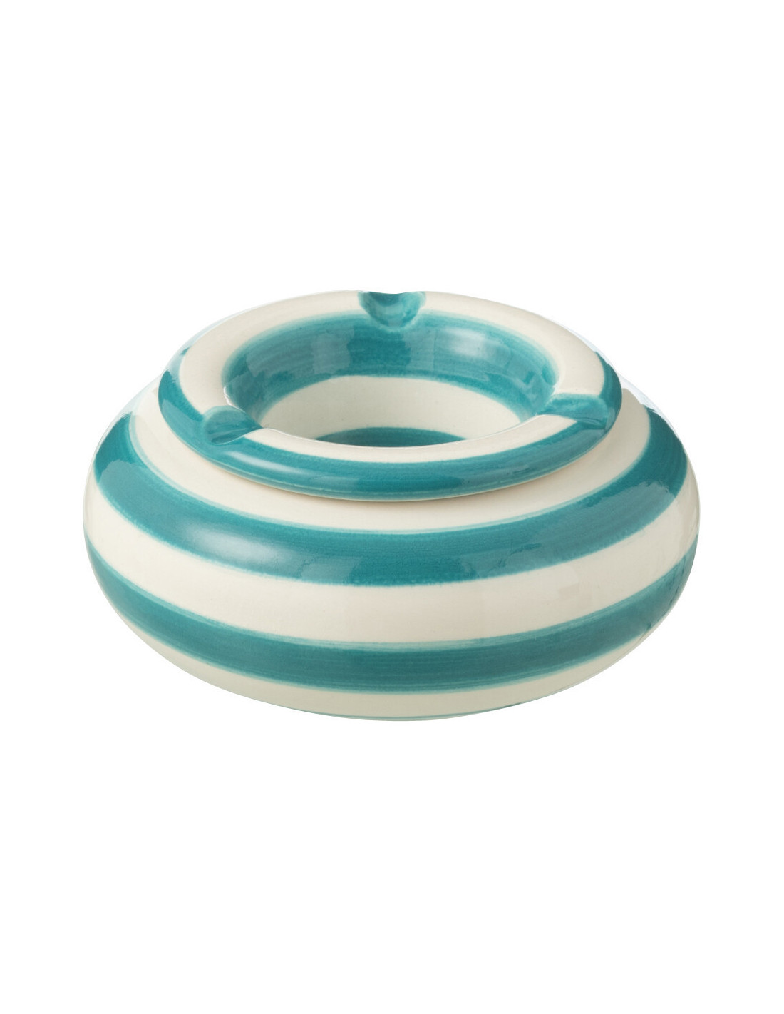 Petit Cendrier original 11 cm en Céramique Bleu aqua Blanc Motif lignes Granada - 1