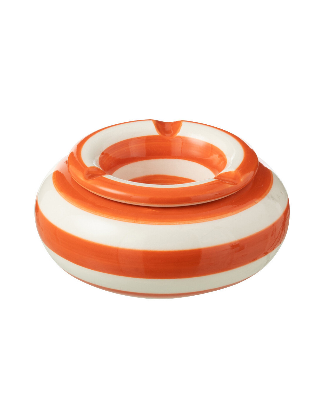 Petit Cendrier original 11 cm en Céramique Orange Blanc Motif lignes Granada - 1