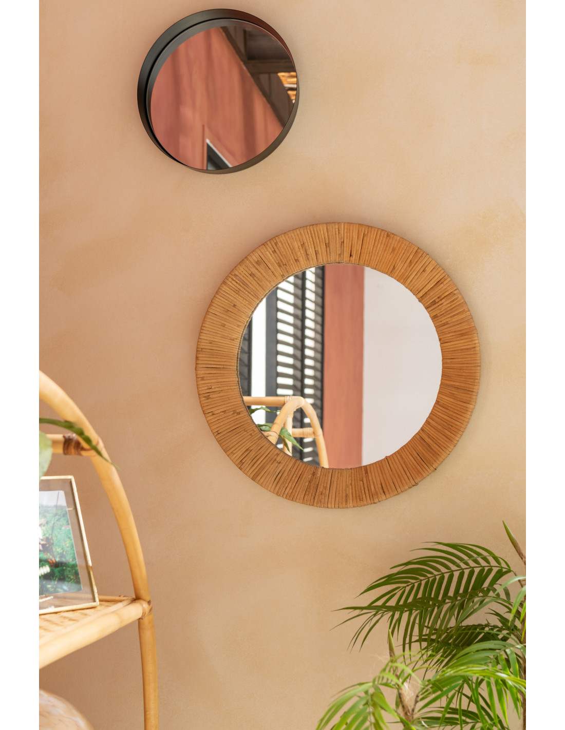 Miroir mural industriel Carré 70x70 en Métal Noir Bois MDF Naturel Nude