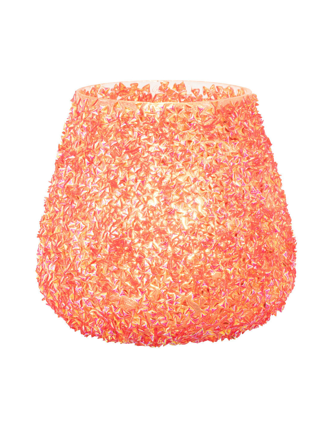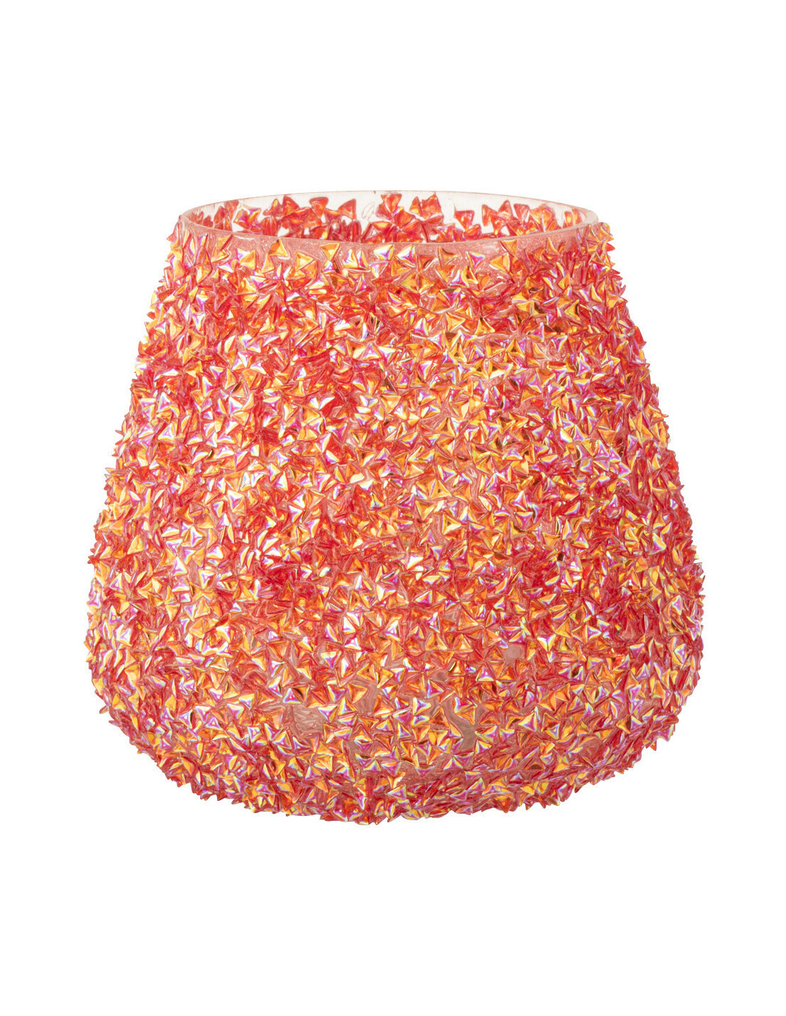 Petit Photophore bohème Diamètre 9 cm en Verre Orange foncé Avec perles Perlino - 1