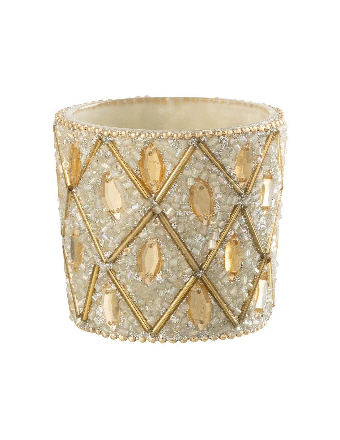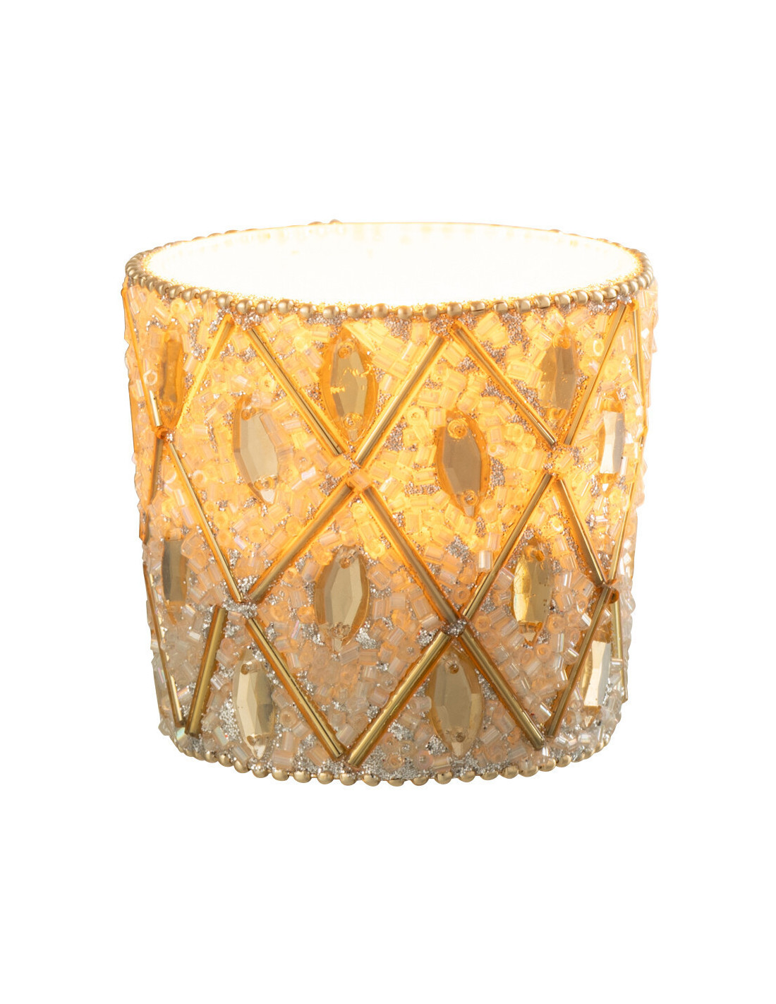 Petit Photophore bohème oriental Diamètre 6 cm en Verre Blanc Perle Doré Pyris - 1