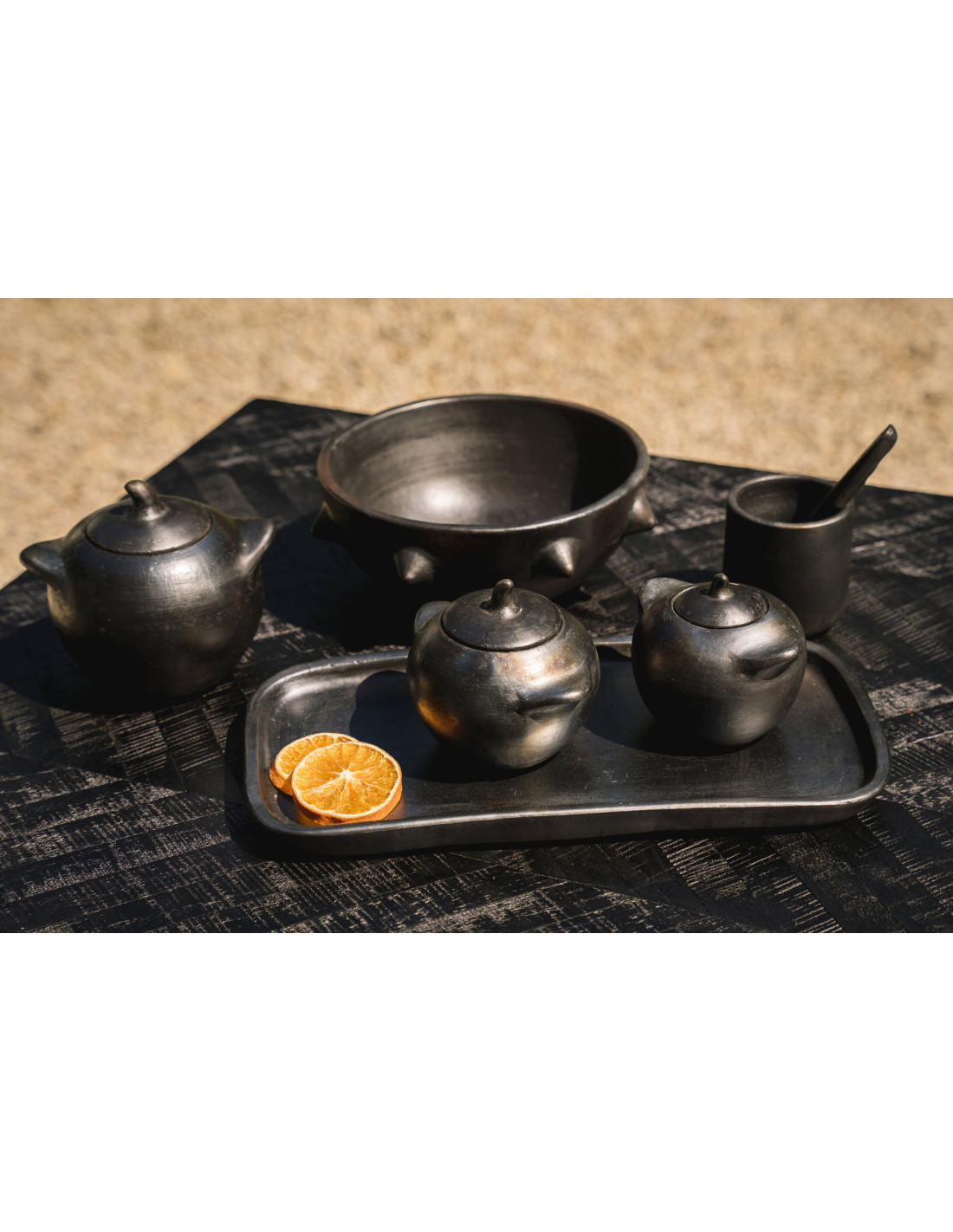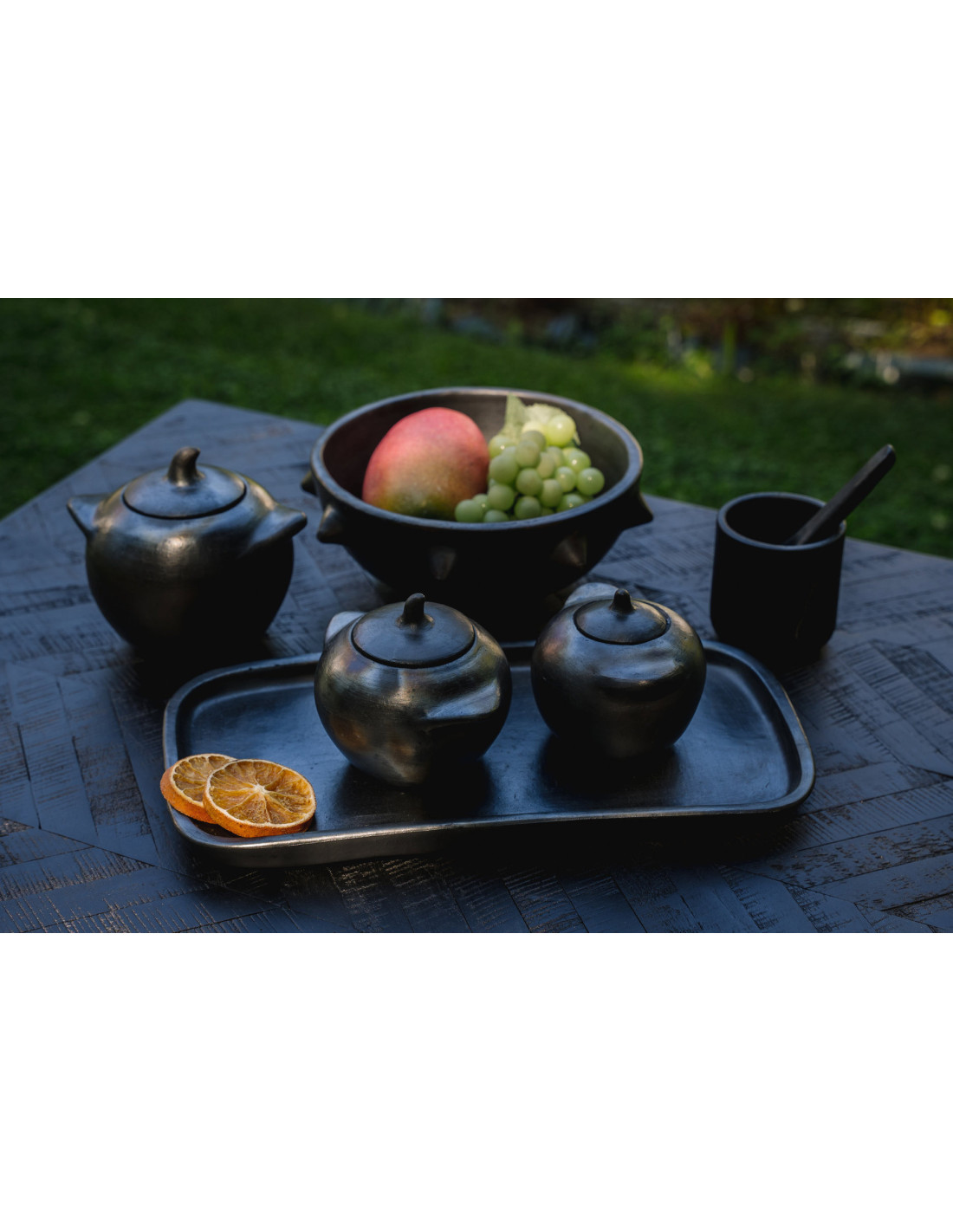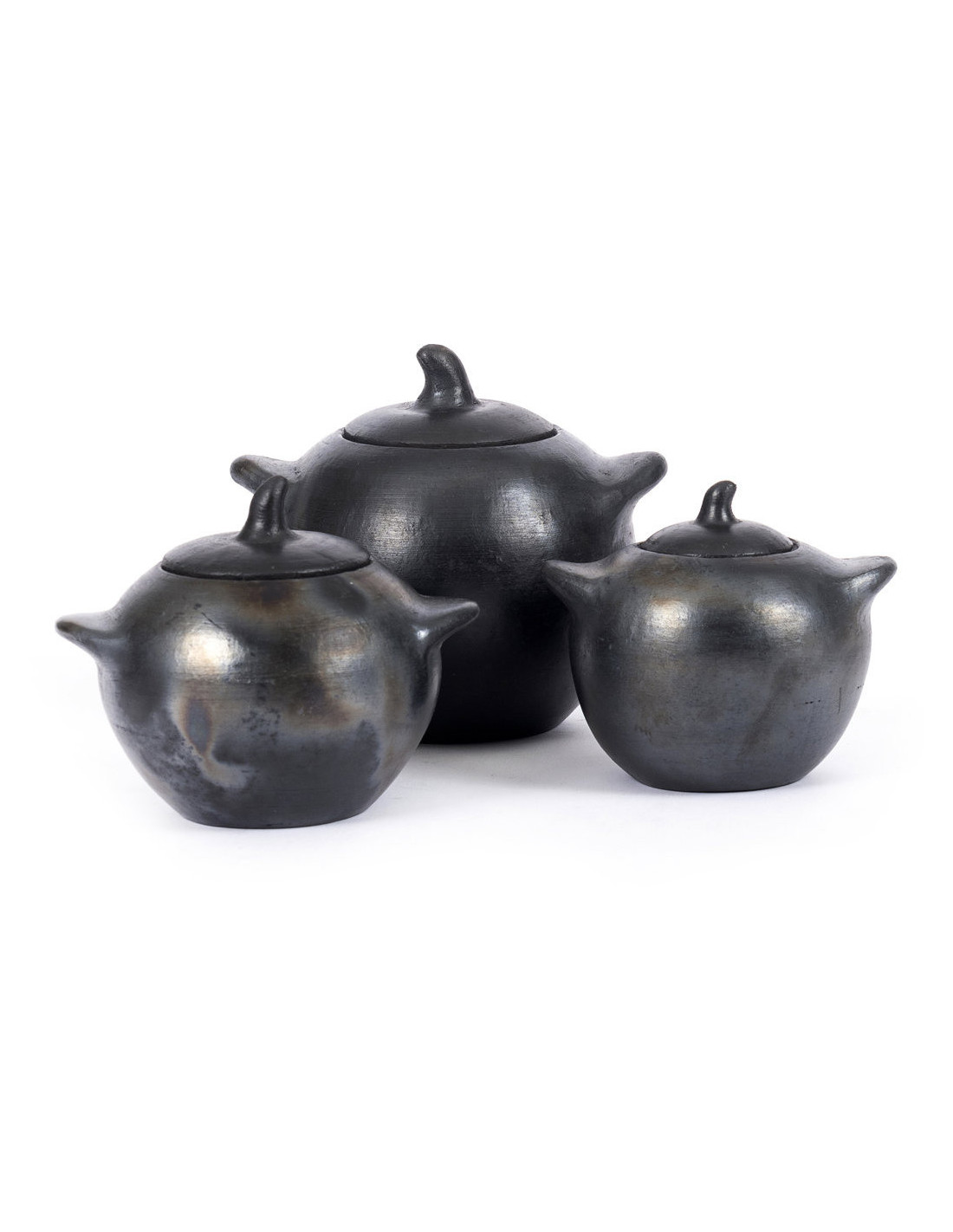 Petit Pot à épices avec couvercle Terre cuite Noir Effet brulé The Burned