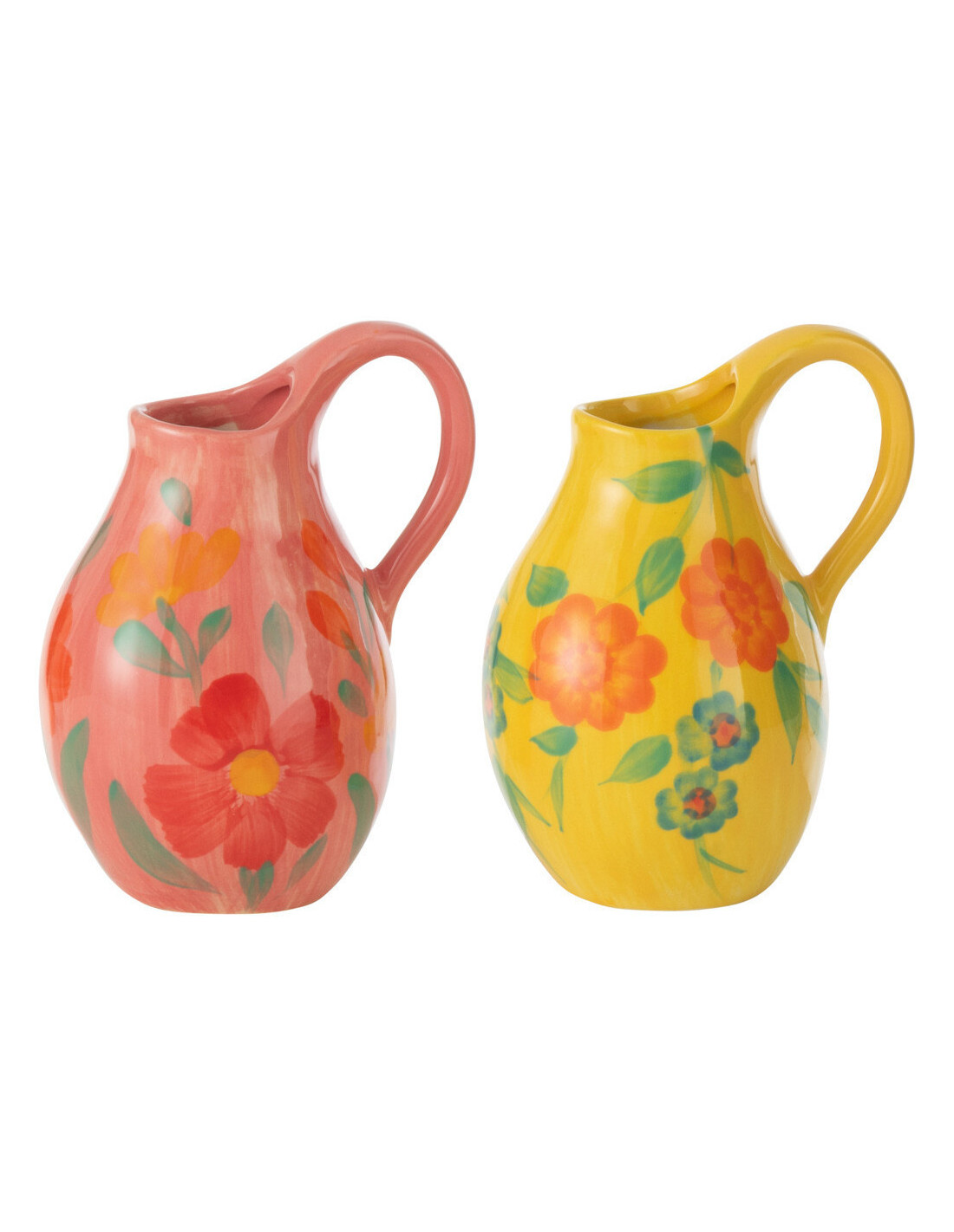 Petit vase bohème Pichet Hauteur 15 cm en Argile Jaune Rose Motif fleurs Alegria (Lot de 2)