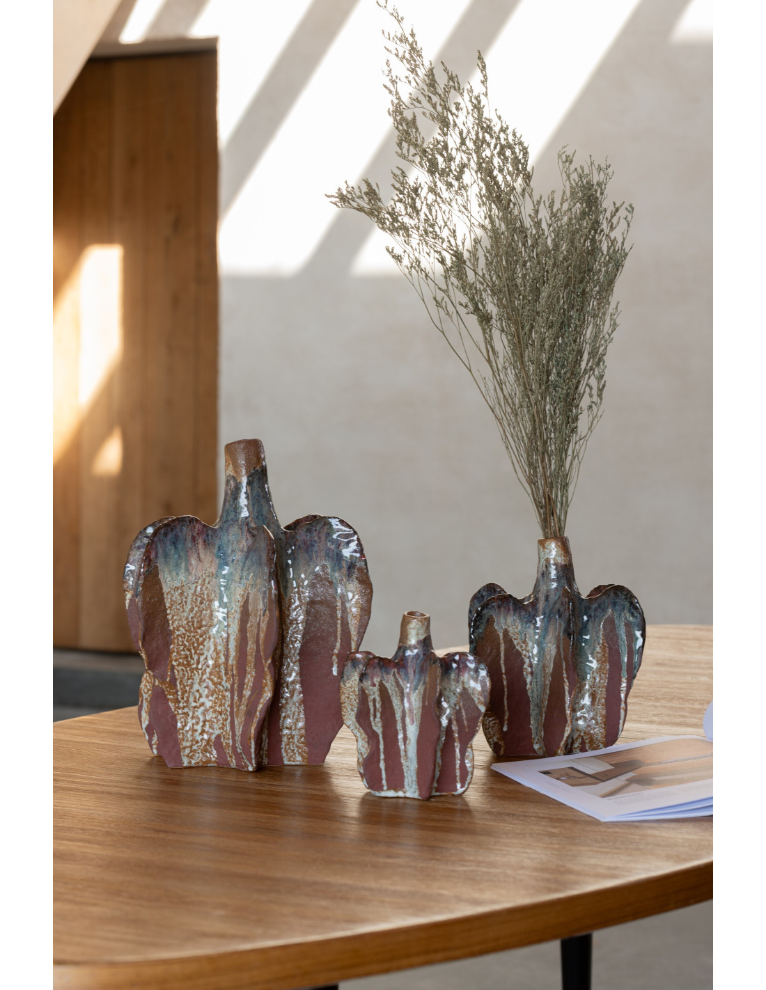Petit Vase ethnique Organique Hauteur 15 cm en Céramique Marron Noir Naga - 1