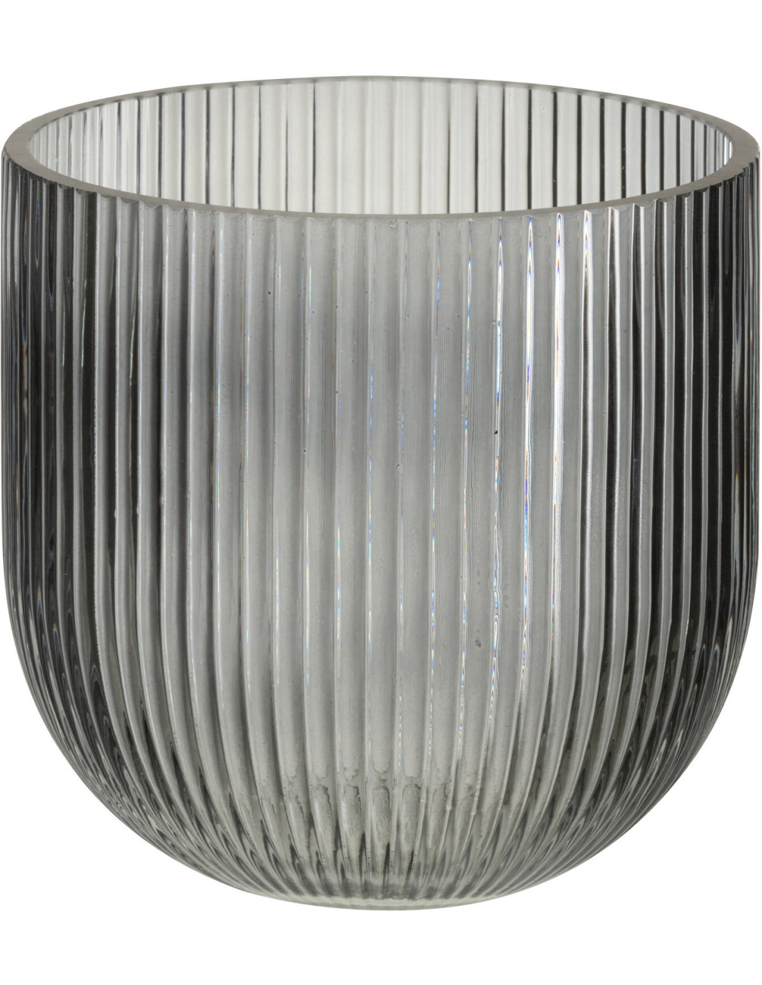 Petit Vase moderne nervuré Rond Hauteur 15 cm en Verre Noir Motif lignes Lineae