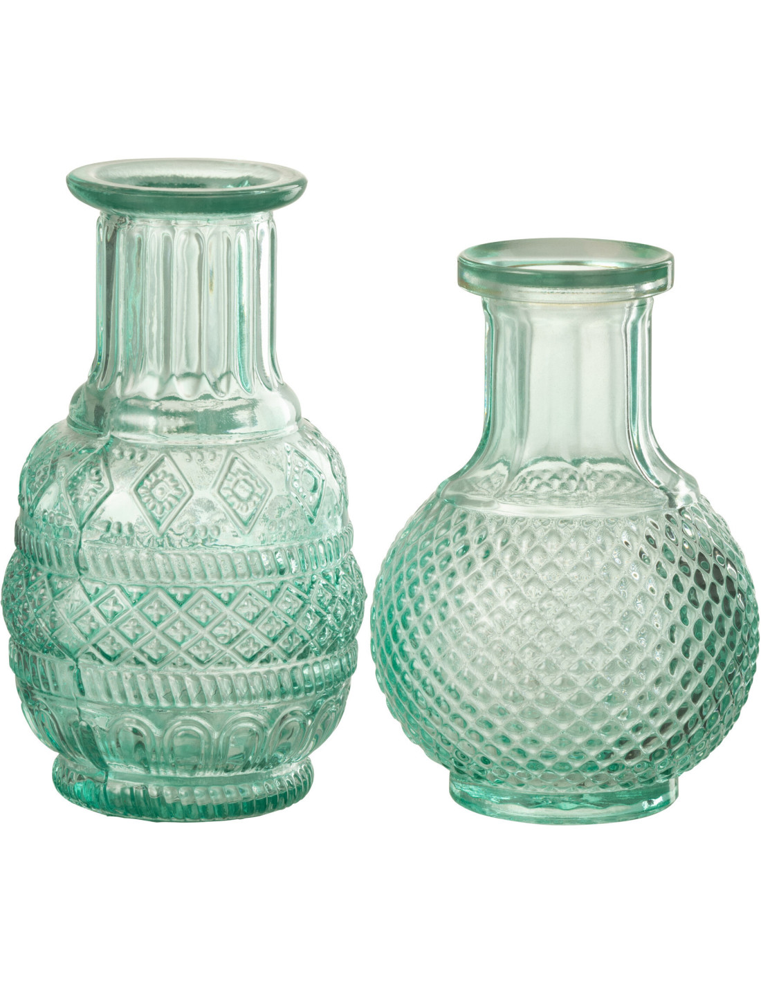 Petit Vase original Rond Hauteur 14 cm en Verre Bleu aqua Nixi (Lot de 2) - 1