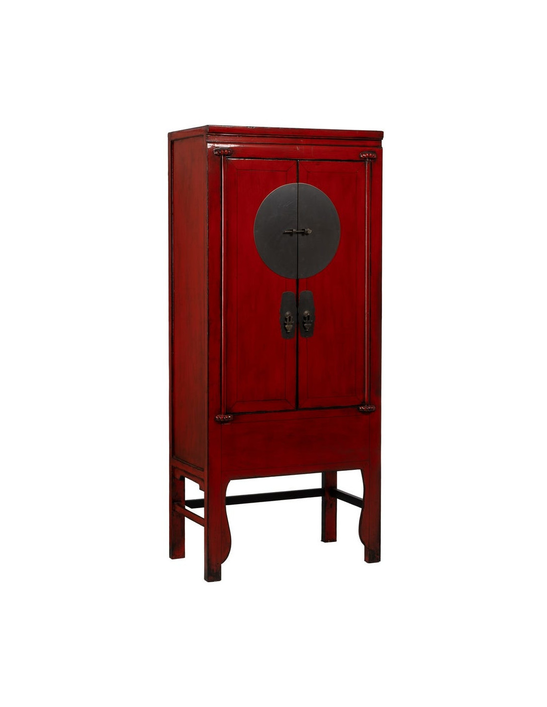 Petite Armoire orientale haute 2 portes en Bois de pin recyclé Rouge Vieilli Cuivre Bois MDF Sana